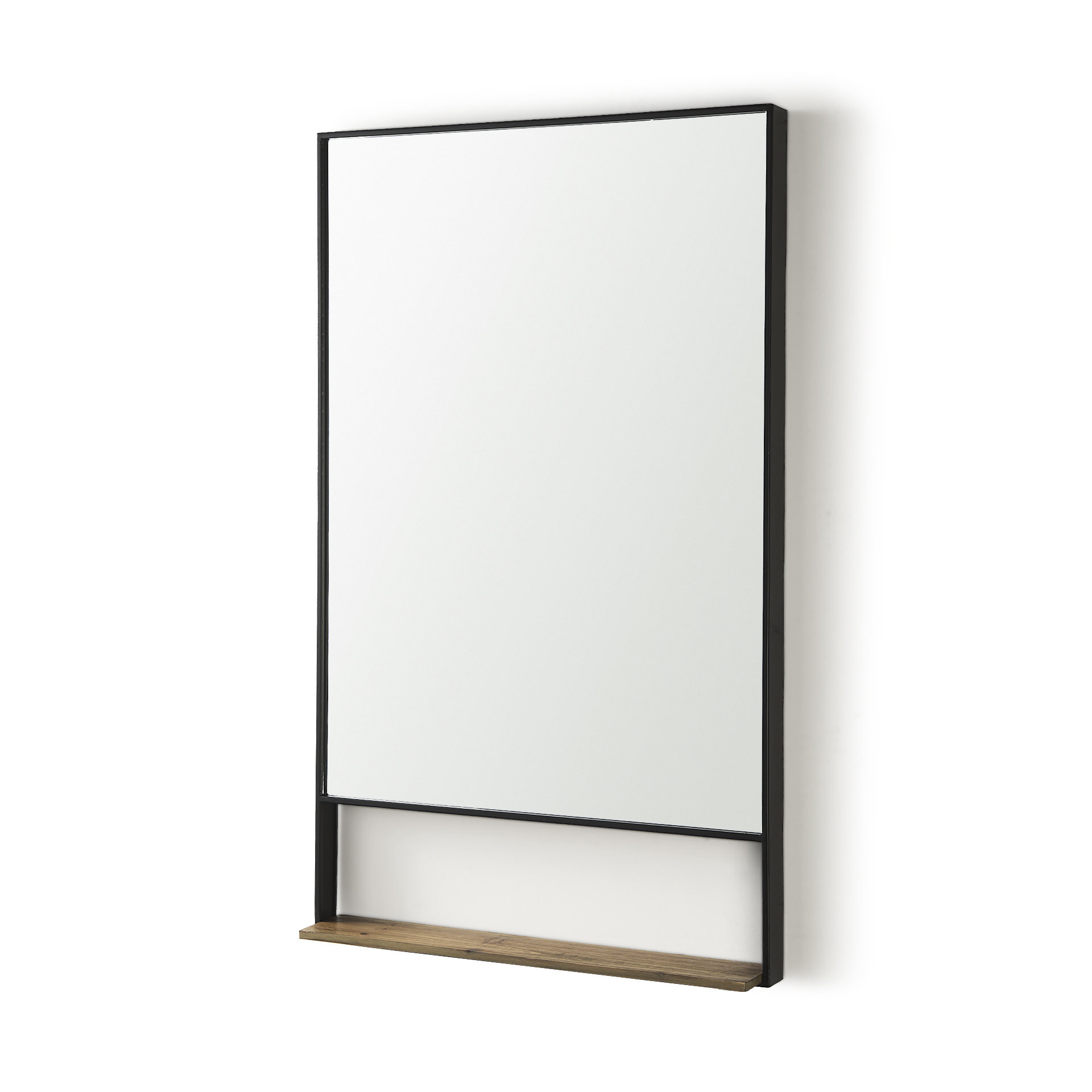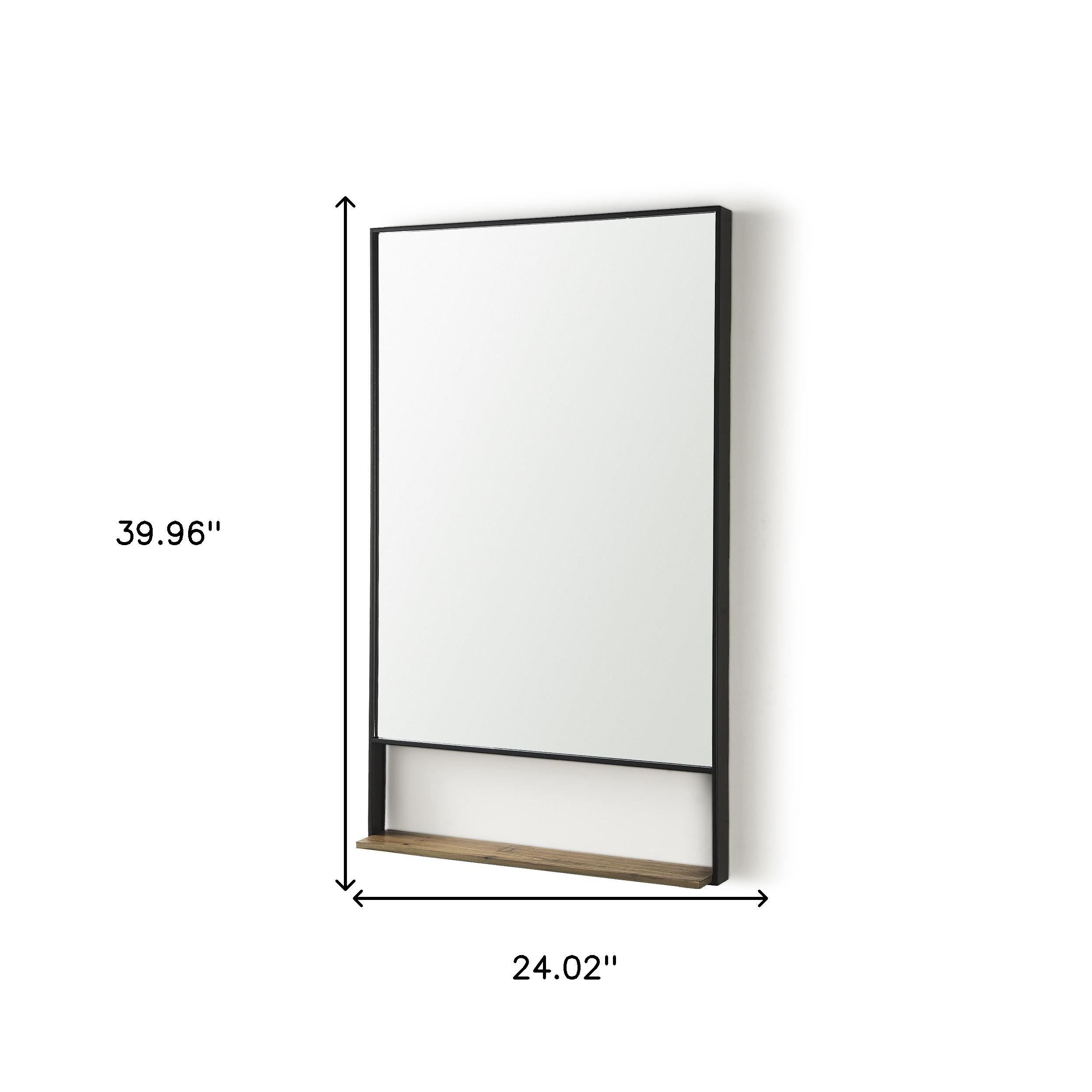 Add a touch of sunshine to any space in your home with this 40-inch black metal framed accent mirror with shelf. Framed with metal, this mirror will bring practical application and fashionable design to your space, adding some modern flair to your decor. Features quality craftsmanship in every facet that ensures durability and long-lasting wear. Produced with premium quality glass for a beautiful reflection, this mirror will provide an exceptional visual experience. 39.96-inch h x 24.02-inch w x 3.94-inch d.