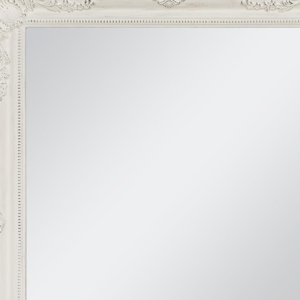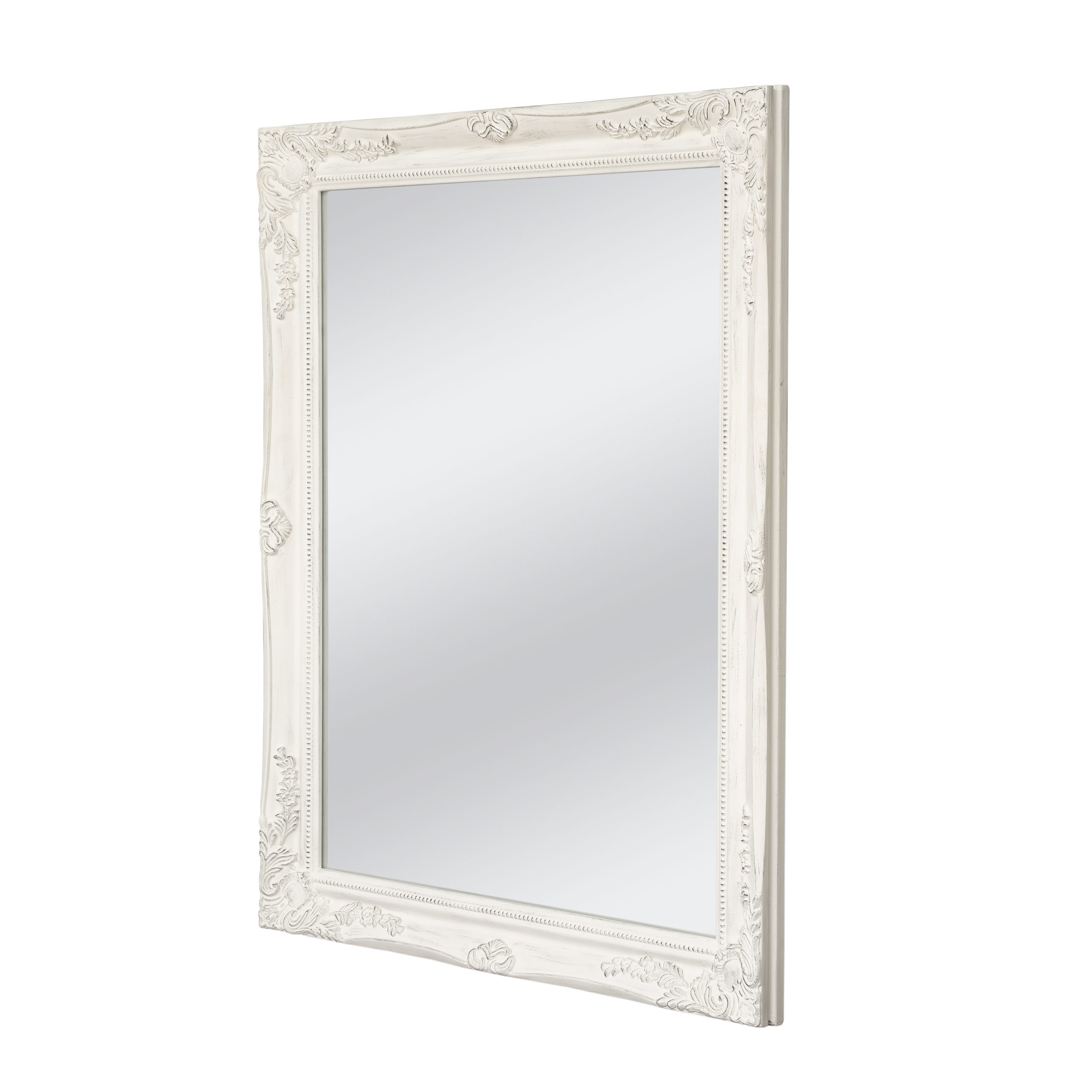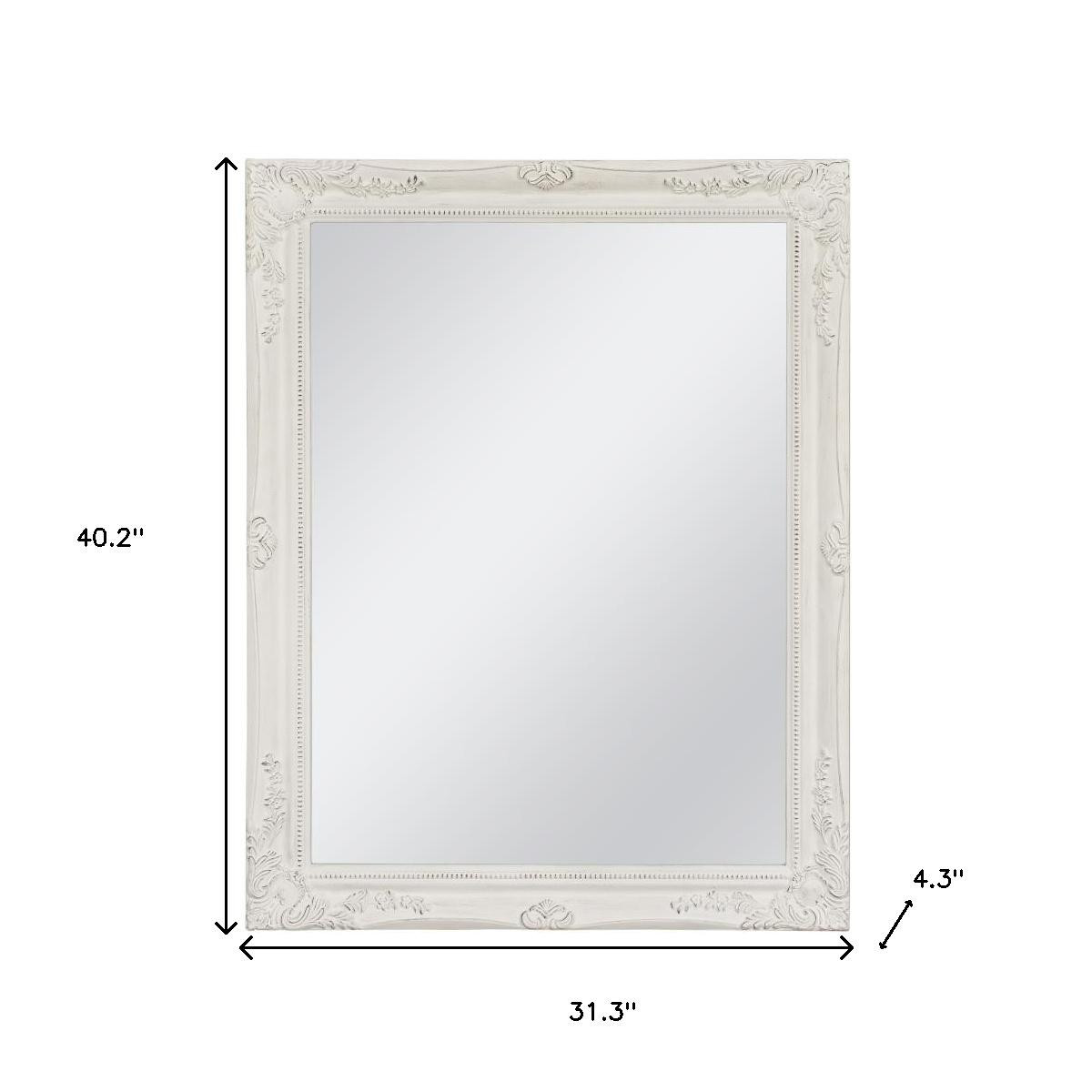 The carefully crafted 40-inch white wood framed accent mirror is what you need to add finishing touch to your decor. Framed with manufactured wood that features a distressed finish with carved scrollwork and beaded detailing. This mirror will bring practical application and fashionable design to your space, adding some vintage flair to your decor. This mirror will be a great useful addition to your home but will also help elevate the space in the room. Add this exceptional quality mirror to your space for a beautiful reflection and a bit of elevated style. 40.2-inch h x 31.3-inch w x 4.3-inch d.
