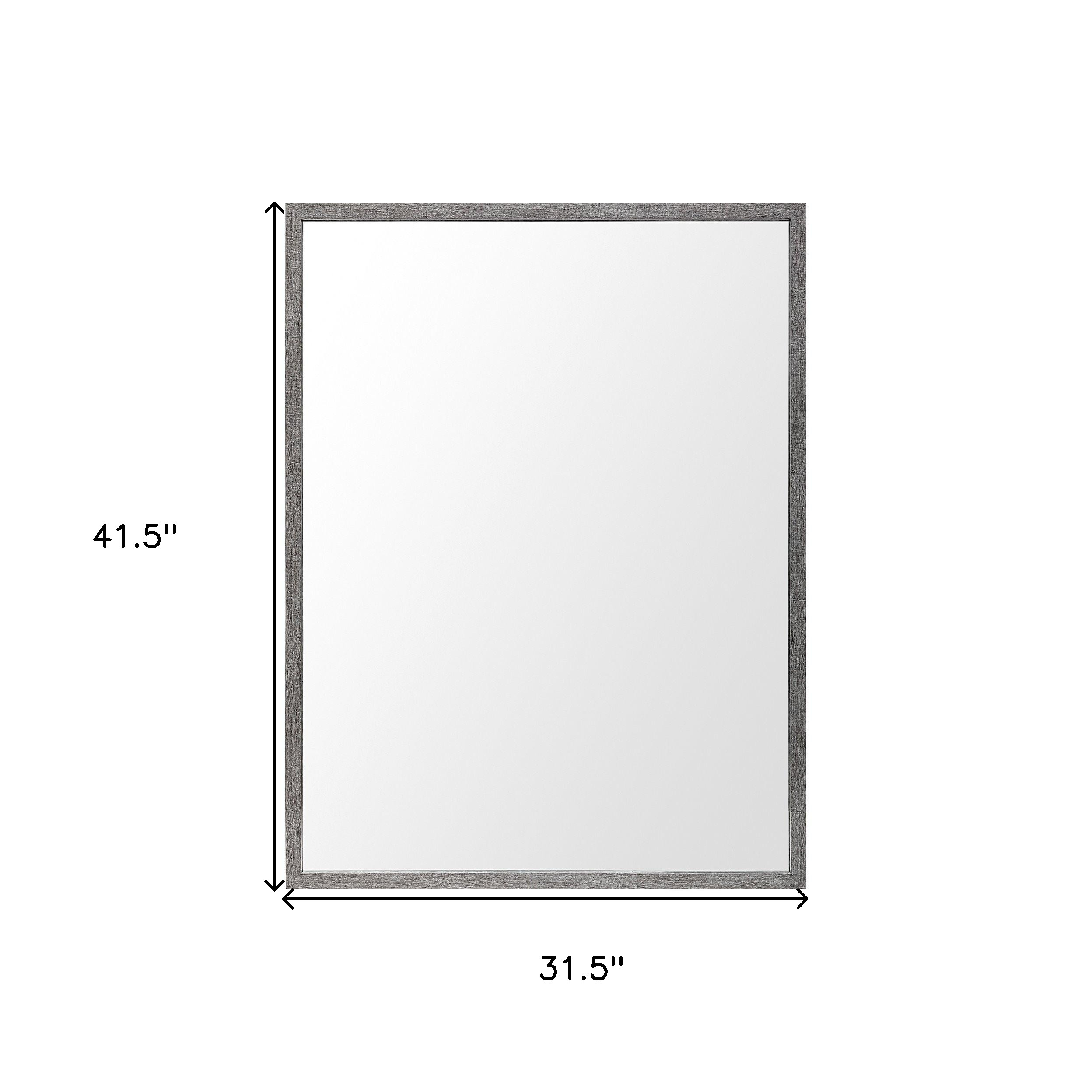 Add beauty to your bathroom or home with this 42-inch gray framed bathroom vanity mirror. Framed with plastic, this mirror will bring practical application and fashionable design to your space, adding some modern flair to your decor. Features quality craftsmanship in every facet that ensures durability and long-lasting wear. Ideal to mount above your bathroom sink or vanity in your bathroom, this versatile piece can also be used in other rooms to add practical style and design to your space. Produced with premium quality glass for a beautiful reflection, this mirror will provide an exceptional visual experience. 41.50-inch h x 31.50-inch w x 1.75-inch d.