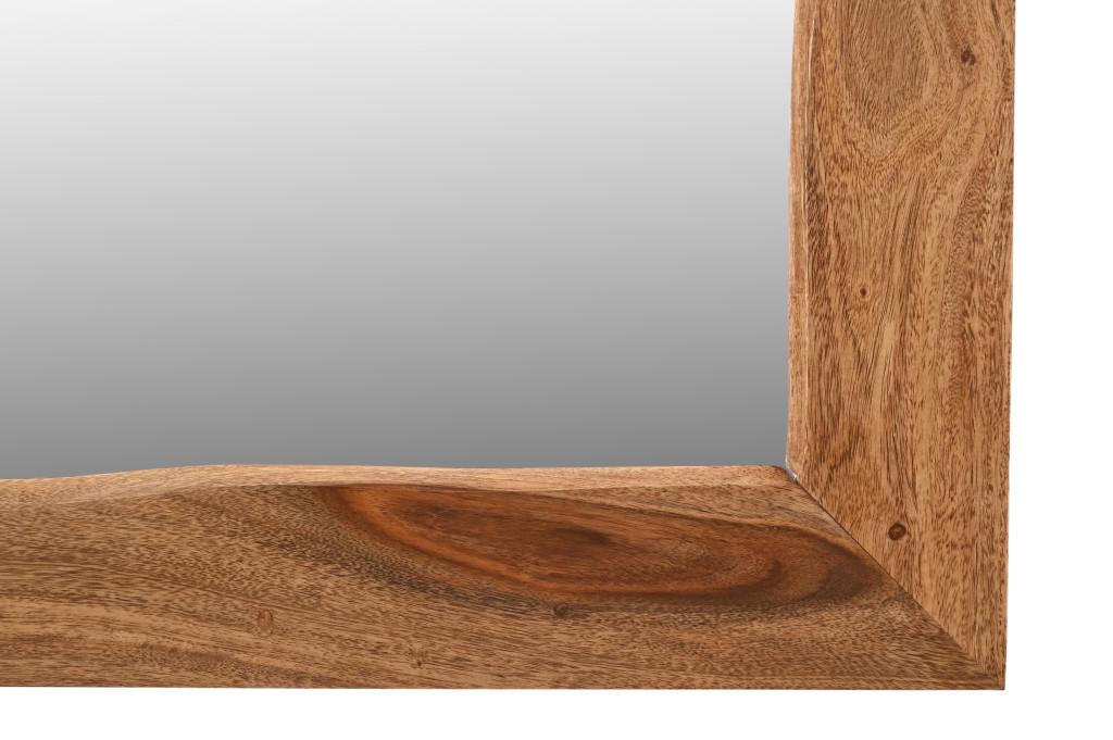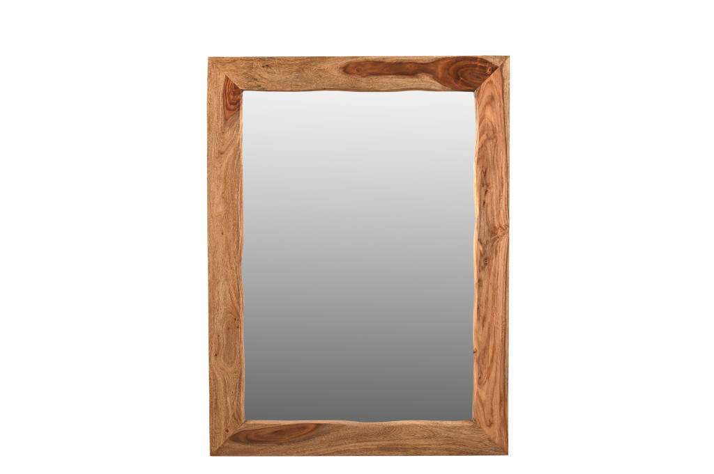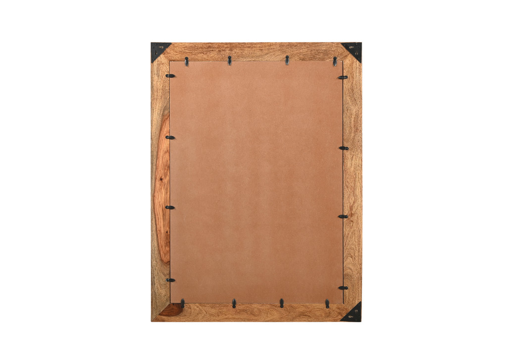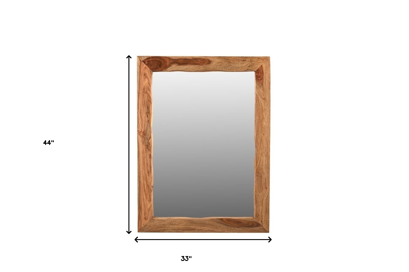 This 44-inch brown solid wood framed accent mirror is an embellishment perfect for your rooms. Inside the frame there is a rectangle shaped mirror which will open up any space you hang this piece in. The mirror of mid-century style can also decorate your room and bring brightness to your living space. It is the perfect wall decor to keep up all year round. This beautiful mirror will add brightness into any room your choose put this mirror in. 44-inch H x 33-inch W x 1-inch D