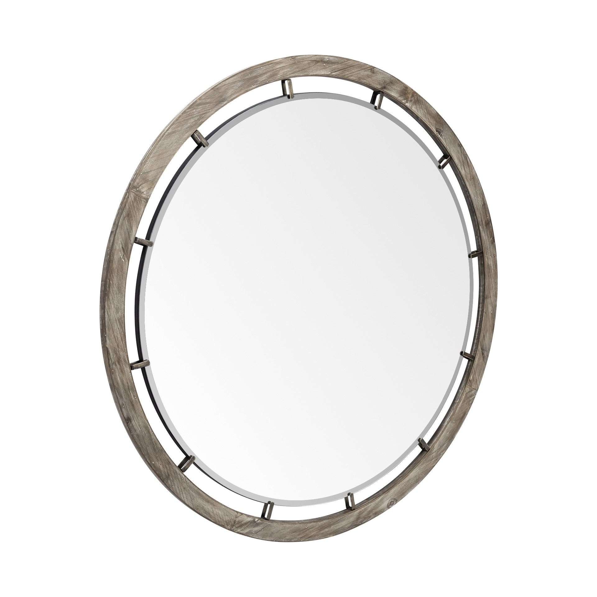 Beautify your space with this 46-inch brown round wood framed accent mirror. Framed with manufactured wood, this mirror will bring practical application and fashionable design to your space, adding some modern flair to your decor. Features quality craftsmanship in every facet that ensures durability and long-lasting wear. Produced with premium quality glass for a beautiful reflection, this mirror will provide an exceptional visual experience. 46.06-inch h x 46.06-inch w x 0.98-inch d.