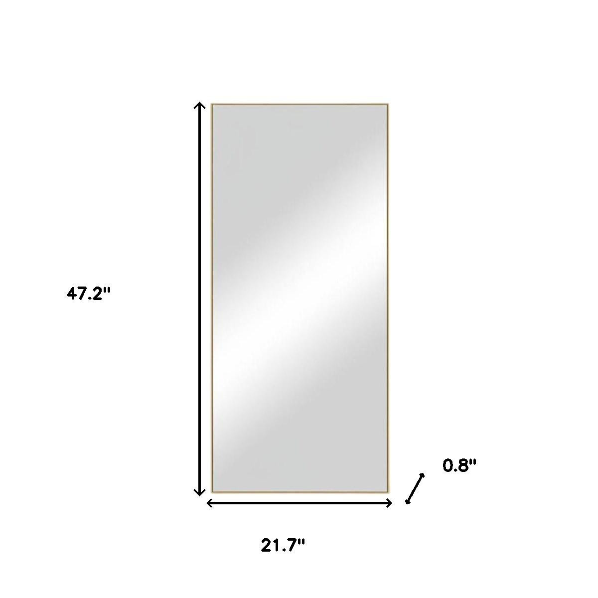 Beautify your space with this 47-inch gold metal accent mirror. Framed with metal, this mirror will bring practical application and fashionable design to your space, adding some transitional flair to your decor. This mirror will be a great useful addition to your home but will also help elevate the space in the room. Add this exceptional quality mirror to your space for a beautiful reflection and a bit of elevated style. 47.2-inch h x 21.7-inch w x 0.8-inch d.