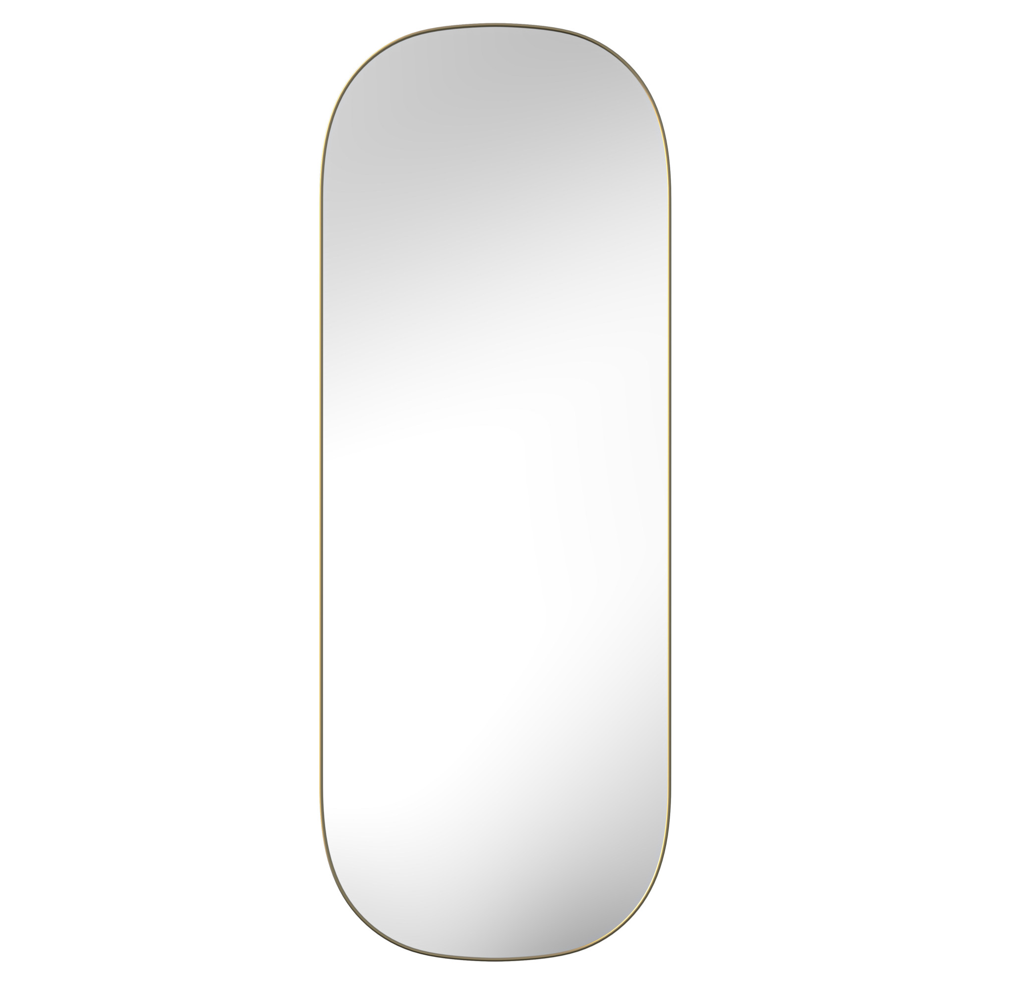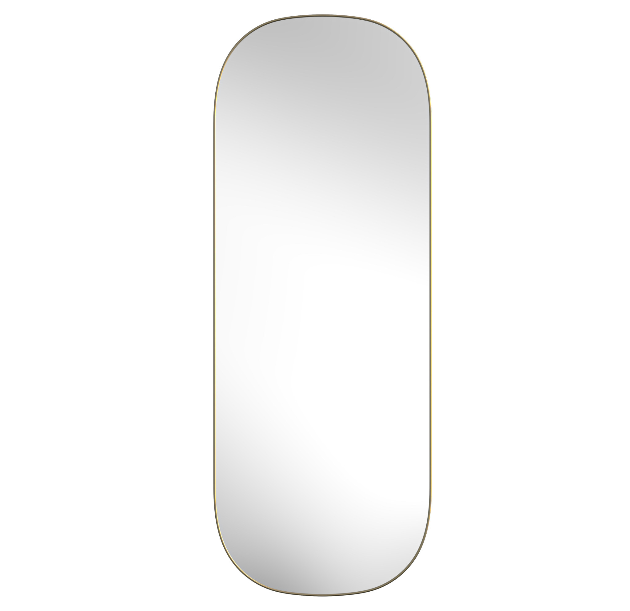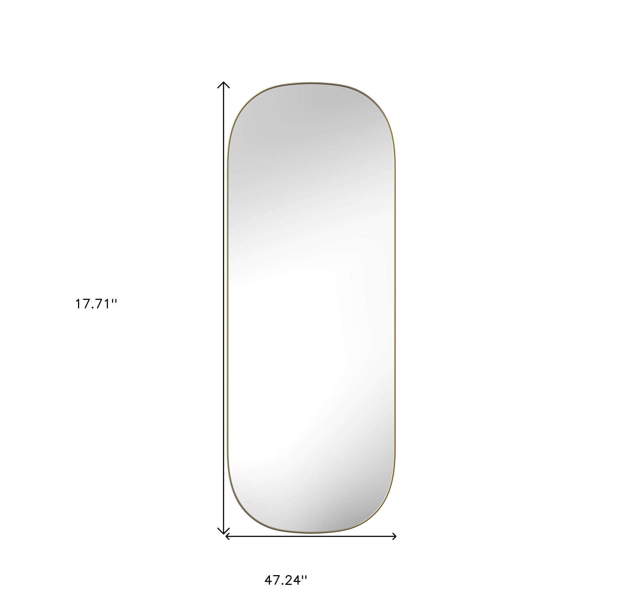 For checking the daily outfit and brightening up the room, this 47-inch gold oval framed full length hanging mirror will be a great addition. Will add some modern flair to your decor. Features quality craftsmanship in every facet that ensures durability and long-lasting wear. Produced with premium quality glass for a beautiful reflection, this mirror will provide an exceptional visual experience. 47.24-inch h x 17.71-inch w x 0.78-inch d.