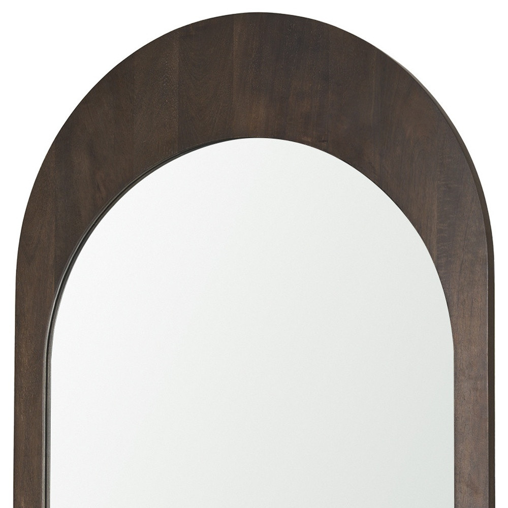 If you want to add some brightness to your living space, the 48-inch brown solid wood arch framed accent mirror is perfect for you. Framed with solid wood, this mirror will bring practical application and fashionable design to your space, adding some modern flair to your decor. This mirror will be a great useful addition to your home but will also help elevate the space in the room. Add this exceptional quality mirror to your space for a beautiful reflection and a bit of elevated style. 48.00-inch h x 30.00-inch w x 1.00-inch d.