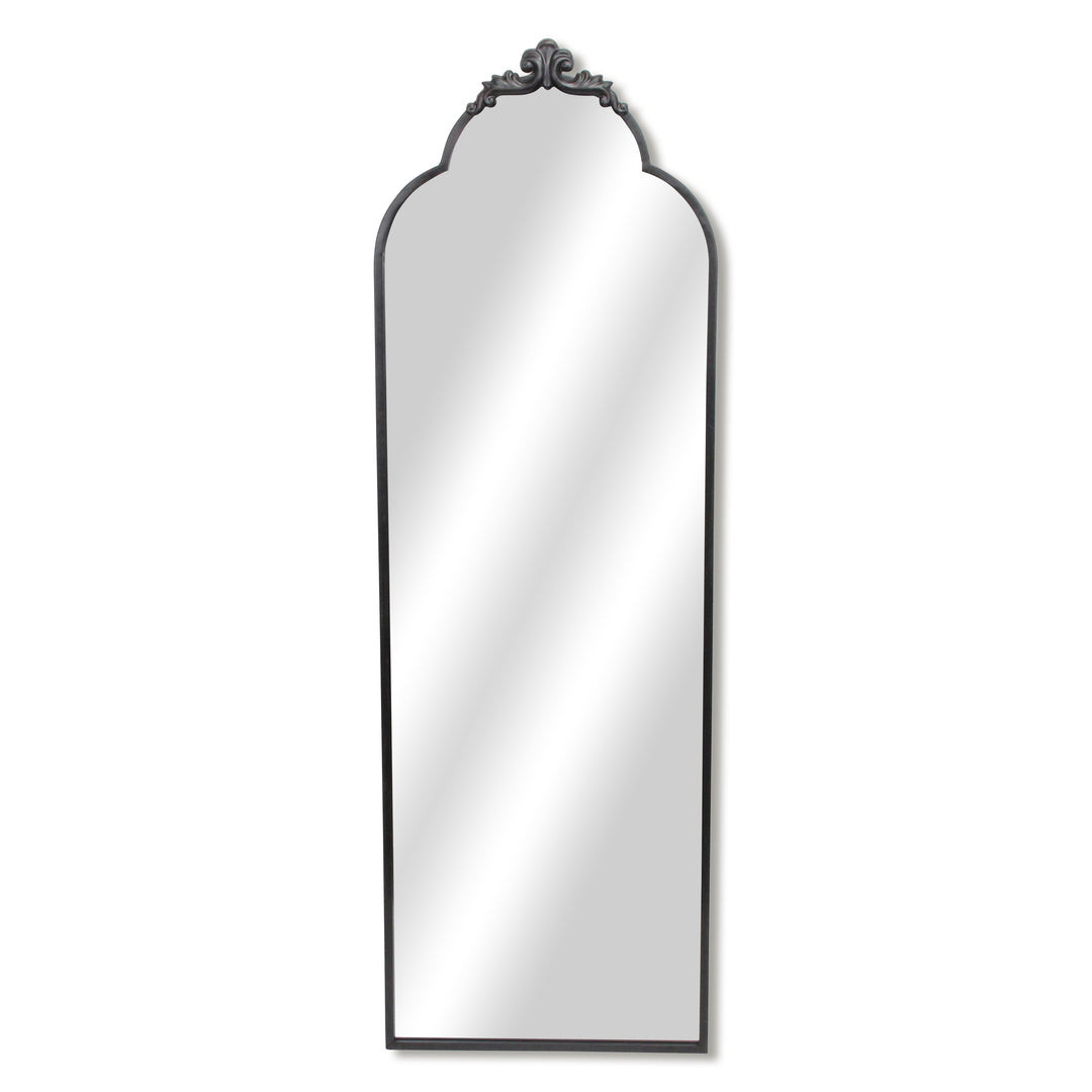 For checking the daily outfit and brightening up the room, this 65-inch black metal arch full length hanging mirror will be a great addition. Framed with metal, this mirror will bring practical application and fashionable design to your space, adding some Victorian flair to your decor. Features quality craftsmanship in every facet that ensures durability and long-lasting wear. Produced with premium quality glass for a beautiful reflection, this mirror will provide an exceptional visual experience. 65-inch h x 21.5-inch w x 1.5-inch d.
