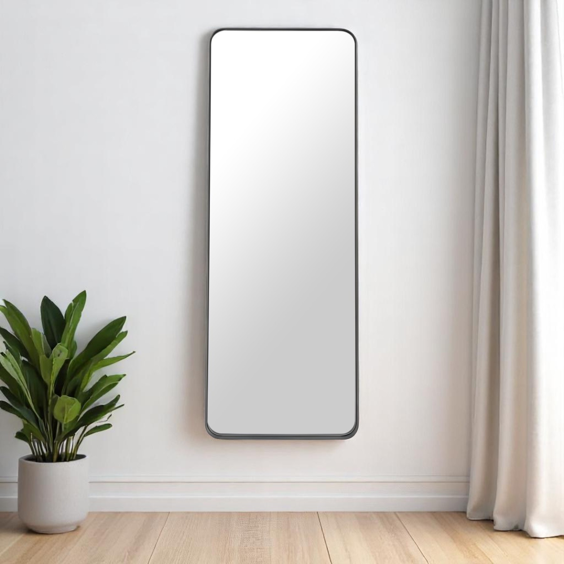 Add this exceptional quality mirror to your space for a beautiful reflection and a bit of elevated style. Featuring a classic frame design, this vertical rectangular mirror adds sophistication to any room. The sleek black steel frame features soft curved edges while providing a modern touch to your decor. With a full-length mirror, you can easily check your outfit from head to toe, making it a practical addition to your home. 66.10-inch h x 24.00-inch w x 4.00-inch d.