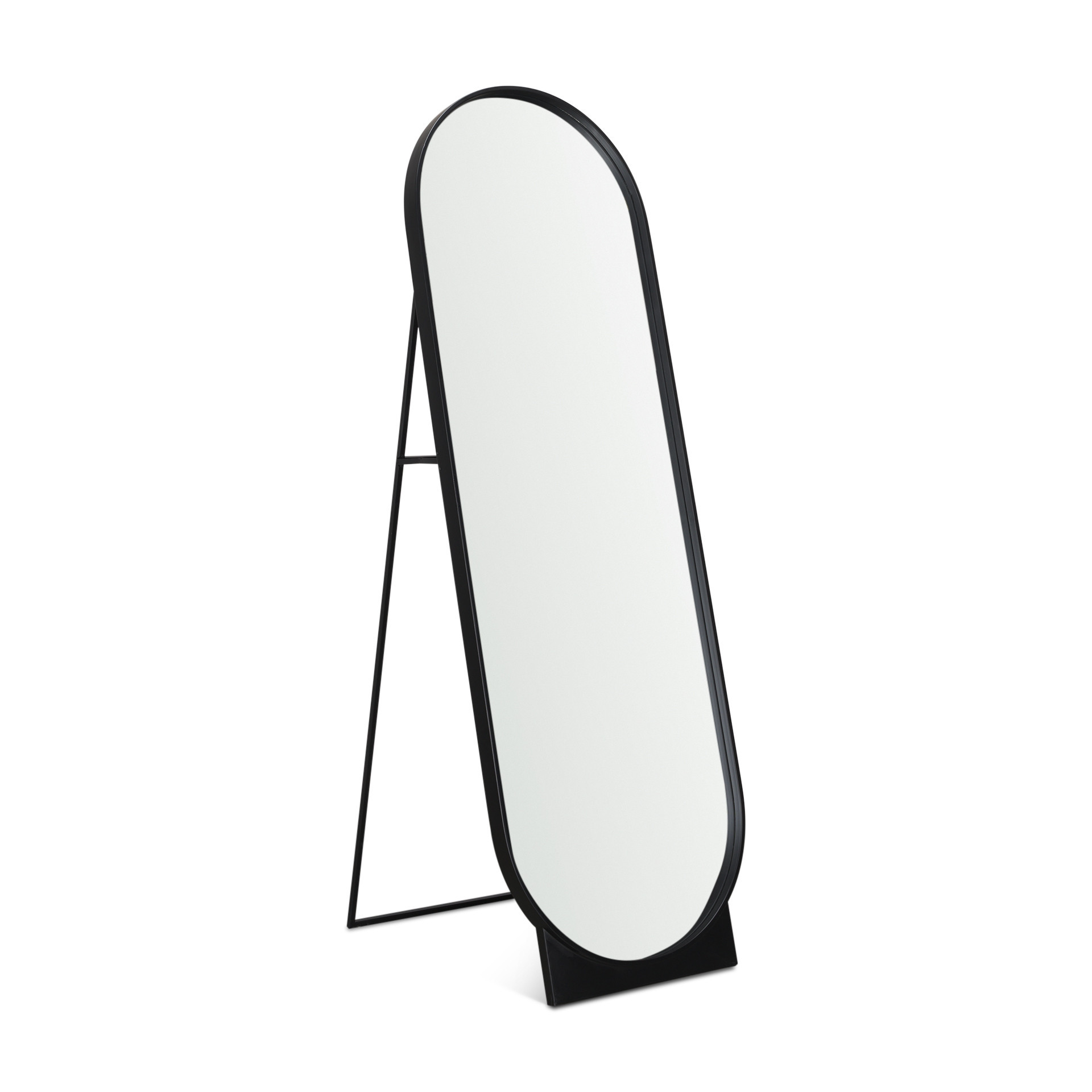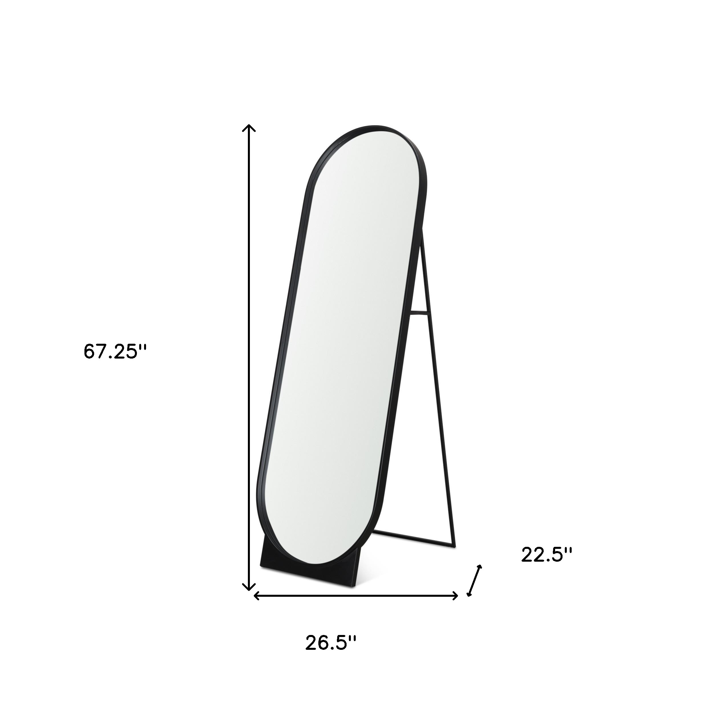 This 67-inch black metal oval freestanding tilting geometric framed standing mirror will be an elegant addition to your bedroom, dressing area, hallway, or living room. Framed with metal, this mirror will bring practical application and fashionable design to your space, adding some modern flair to your decor. Features quality craftsmanship in every facet that ensures durability and long-lasting wear. Produced with premium quality glass for a beautiful reflection, this mirror will provide an exceptional visual experience. 67.25-inch h x 26.50-inch w x 22.50-inch d.