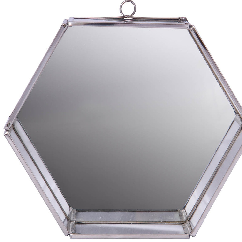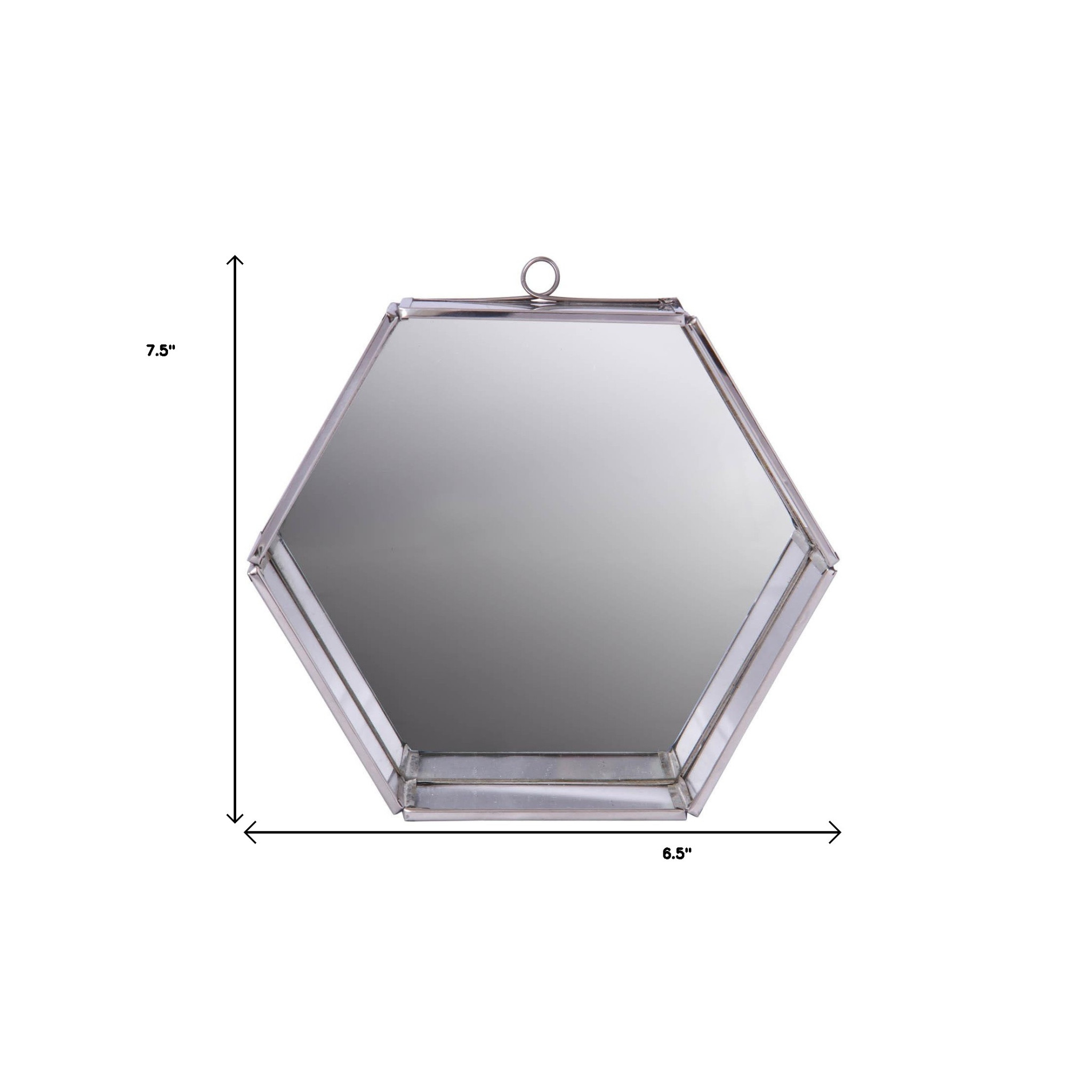 Beautify your space with this 8-inch silver hexagon steel framed accent mirror that is both original and unique at the same time. The hexagon shaped shadow box style frame and mirror adds a nice touch of depth and texture to your walls. This unique mirror will look great as part of your existing wall decor or you can use it as a statement piece anywhere in your home. 7.5-inch H x 6.5-inch W x 2.8-inch D