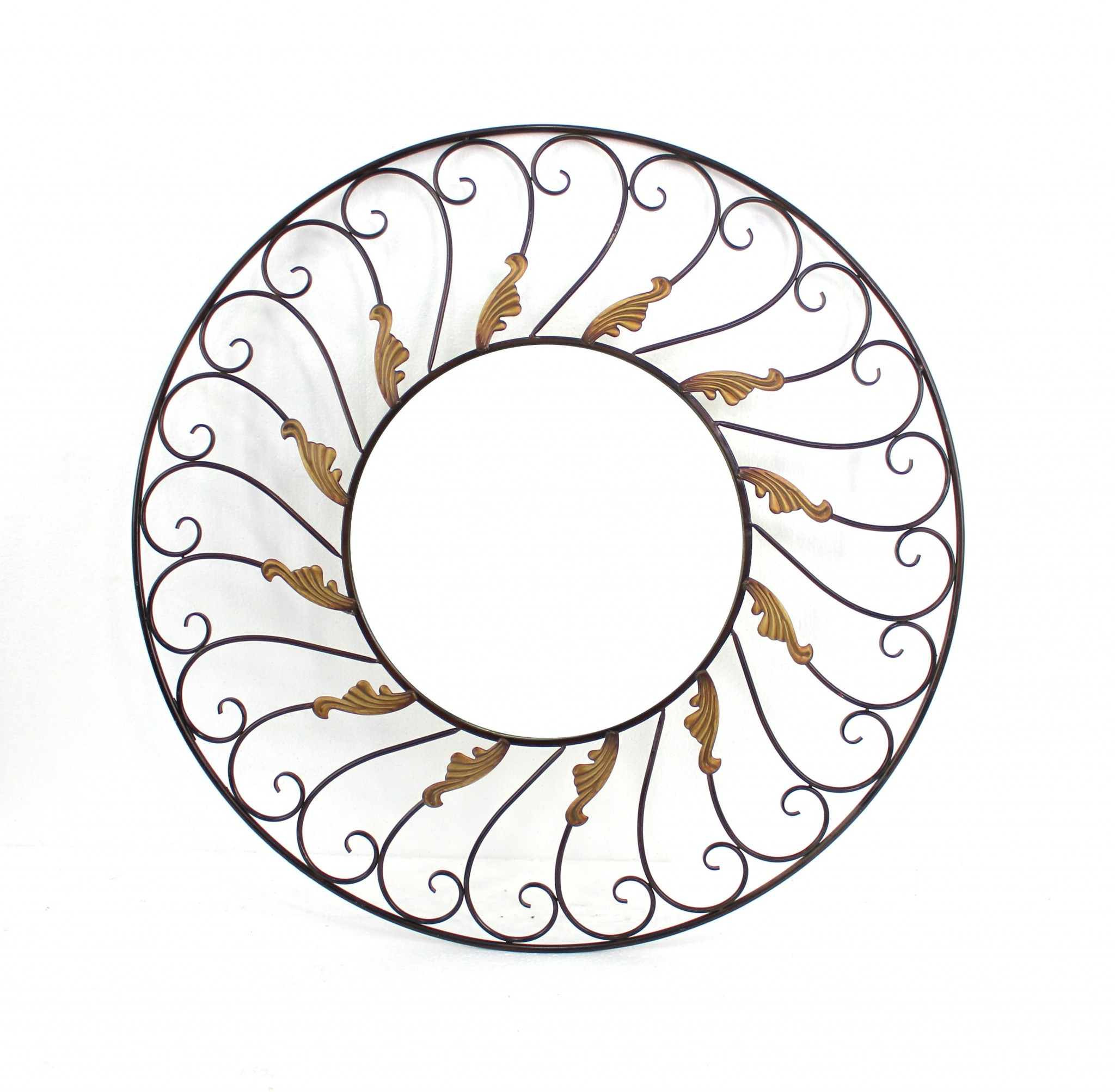 Add a touch of sunshine to any space in your home with this bronze round accent metal mirror. The frame of this mirror is made from metal which has a bronze color to it. This round shaped mirror will open up any space you put in piece in. This mirror makes any room glow with its fantastic frame. The traditional style of this piece will work great in any room you choose to put it in. Its both exceptional and tasteful, and its tough as well. This beautiful mirror will add brightness into any room your choose put this mirror in. 37.5-inch H x 37.5-inch W x 1.25-inch D