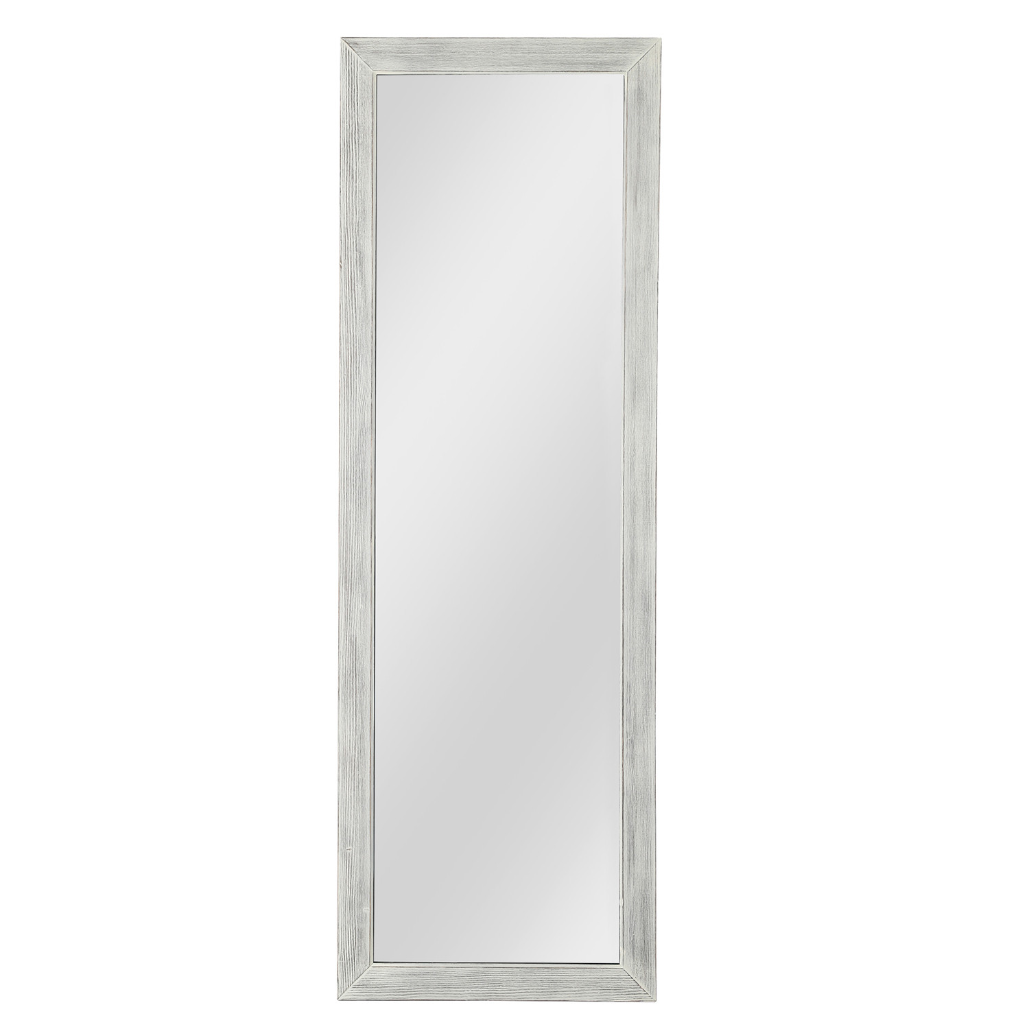 The perfect way to add a rustic touch to your home, this Brushed White Wooden Mirror will elevate and brighten any space you place it in. The mirror has a rectangular shape and is encased in a wooden frame which has a brushed white varnish on it. The edges of the frame are slightly beveled on the inside which adds a nice touch of depth to the overall look. There is a removable black colored stand that you can use for to help the mirror stand up. You can use this mirror anywhere in your home without worrying about any clashing colors or decor styles. Hang it up vertically or horizontally, the choice is yours! 64.2″ H x 21.3″ W x 1.2″ D