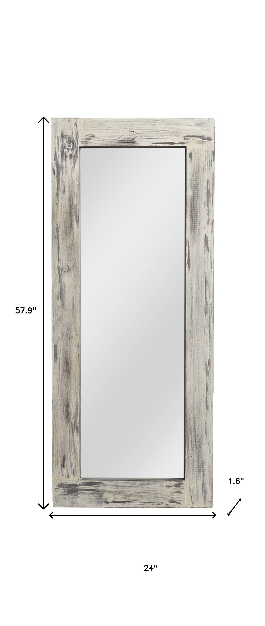 The perfect way to add a rustic touch to your home, this Brushed Dark Gray Wooden Mirror will elevate and brighten any space you place it in. The mirror has a rectangular shape and is encased in a wooden frame which has a brushed dark gray varnish on it. The edges of the frame are slightly beveled on the inside which adds a nice touch of depth to the overall look. There is a removable black colored stand that you can use for to help the mirror stand up. You can use this mirror anywhere in your home without worrying about any clashing colors or decor styles. Hang it up vertically or horizontally, the choice is yours! 57.9″ H x 24″ W x 1.6″ D