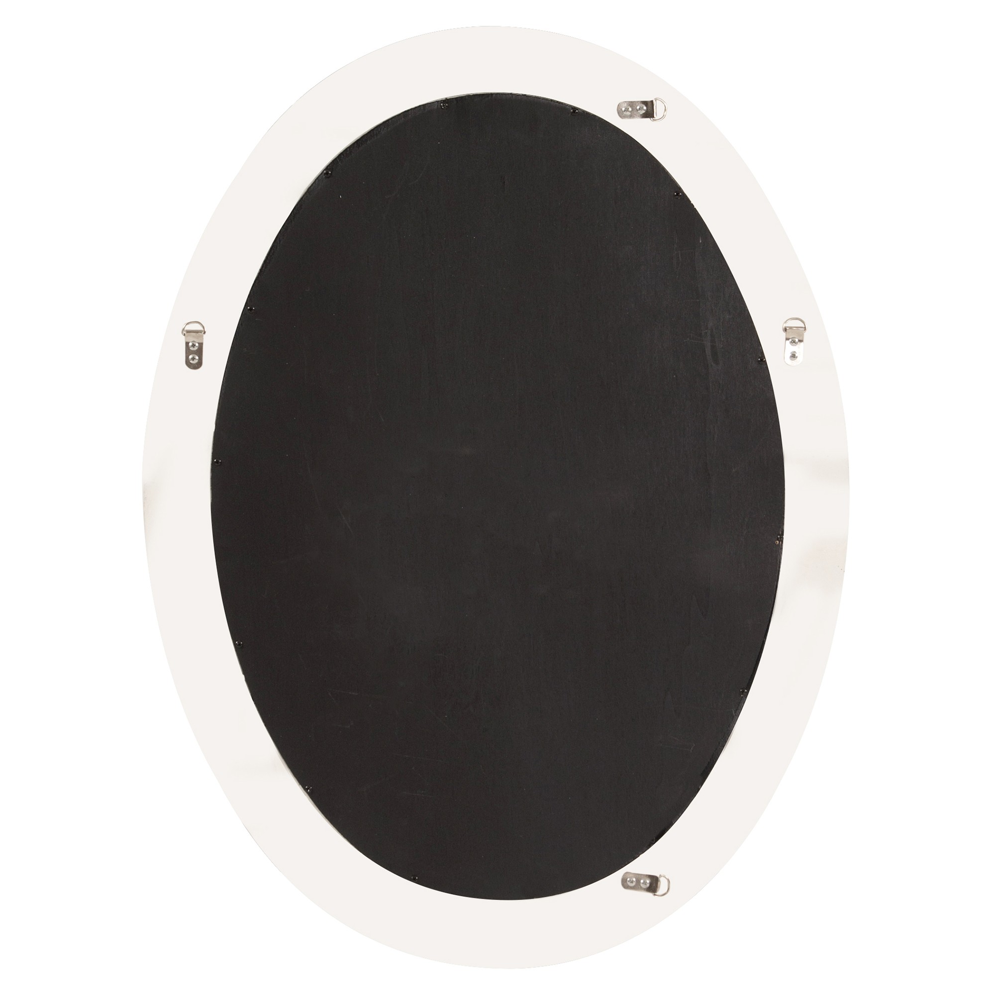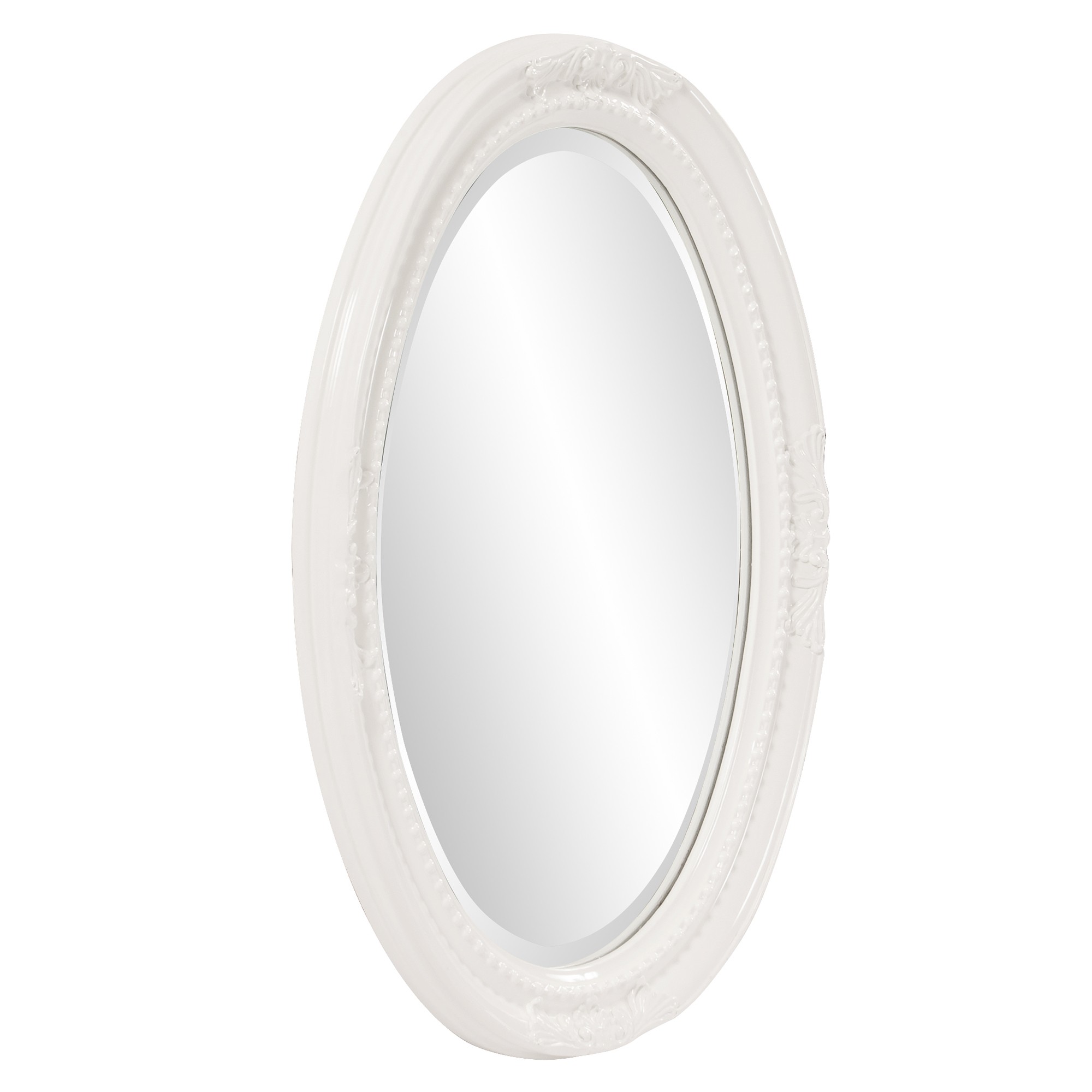 This mirror features a glossy white lacquer finish. The oval frame is made from wood and is accented with a beaded textured inset and decorative adornments on each side of the frame. For more added detail the mirror features a one inch bevel. Its Traditional style makes this mirror a favorite for bringing some flair to your decor. This simple yet stunning piece would be a great addition to any room. It is a perfect focal point for an entryway, bathroom, bedroom or any room in your home. D-rings are affixed to the back of the mirror so it is ready to hang right out of the box in either a horizontal or vertical orientation!