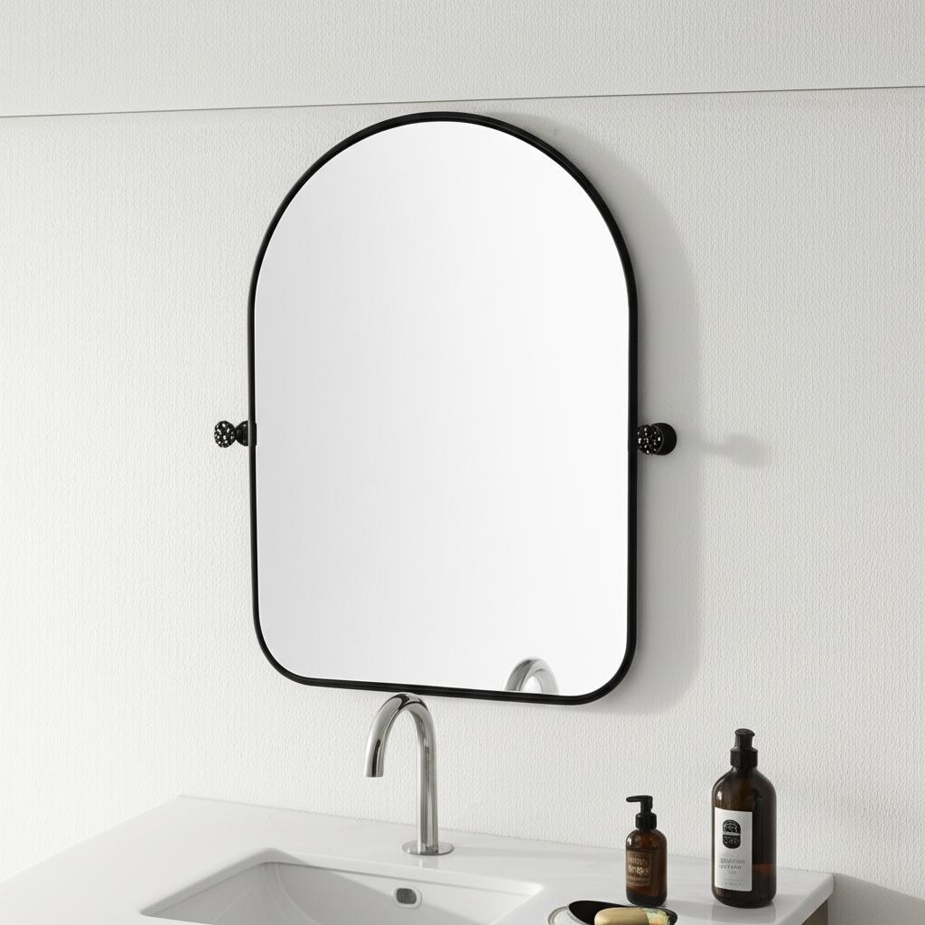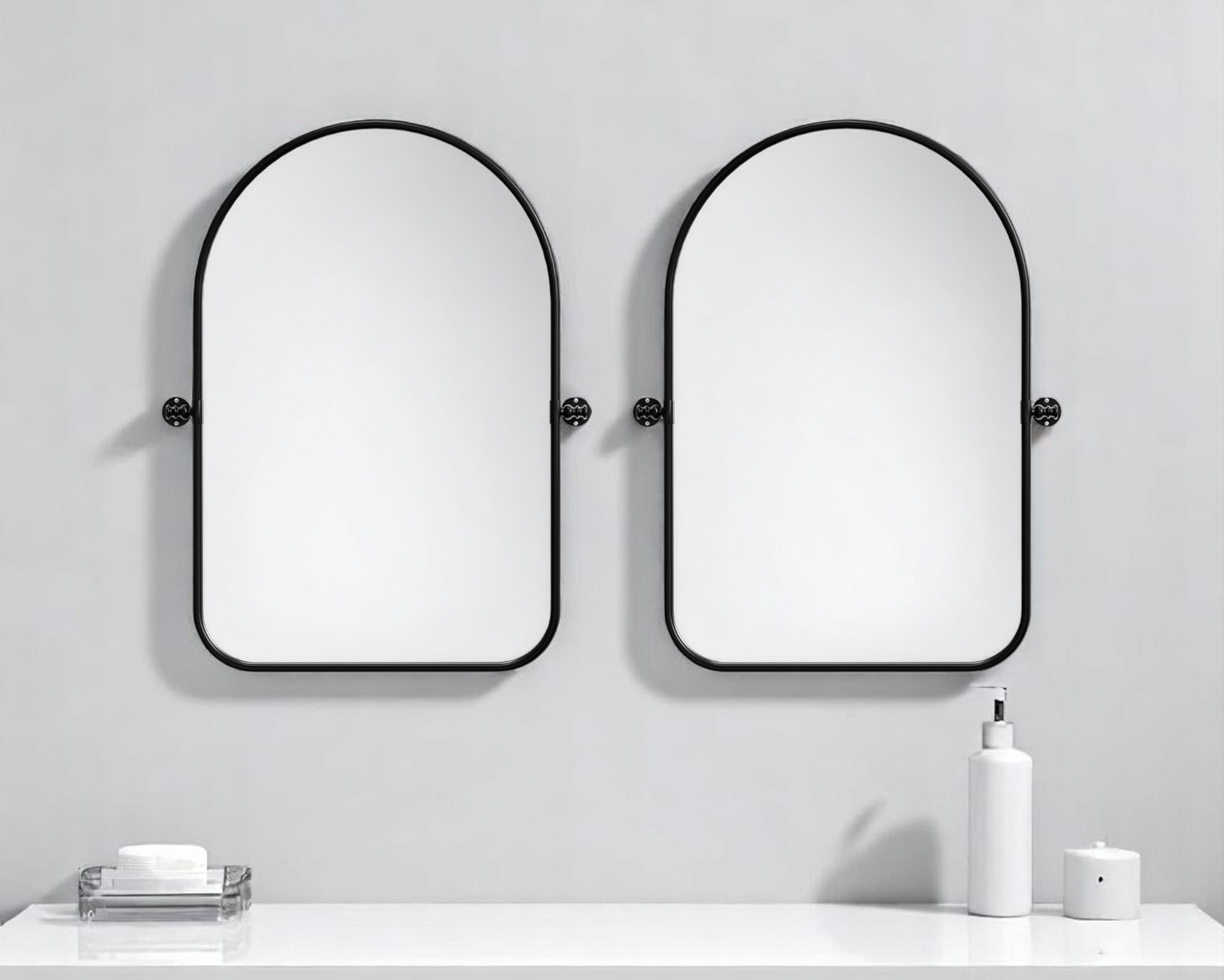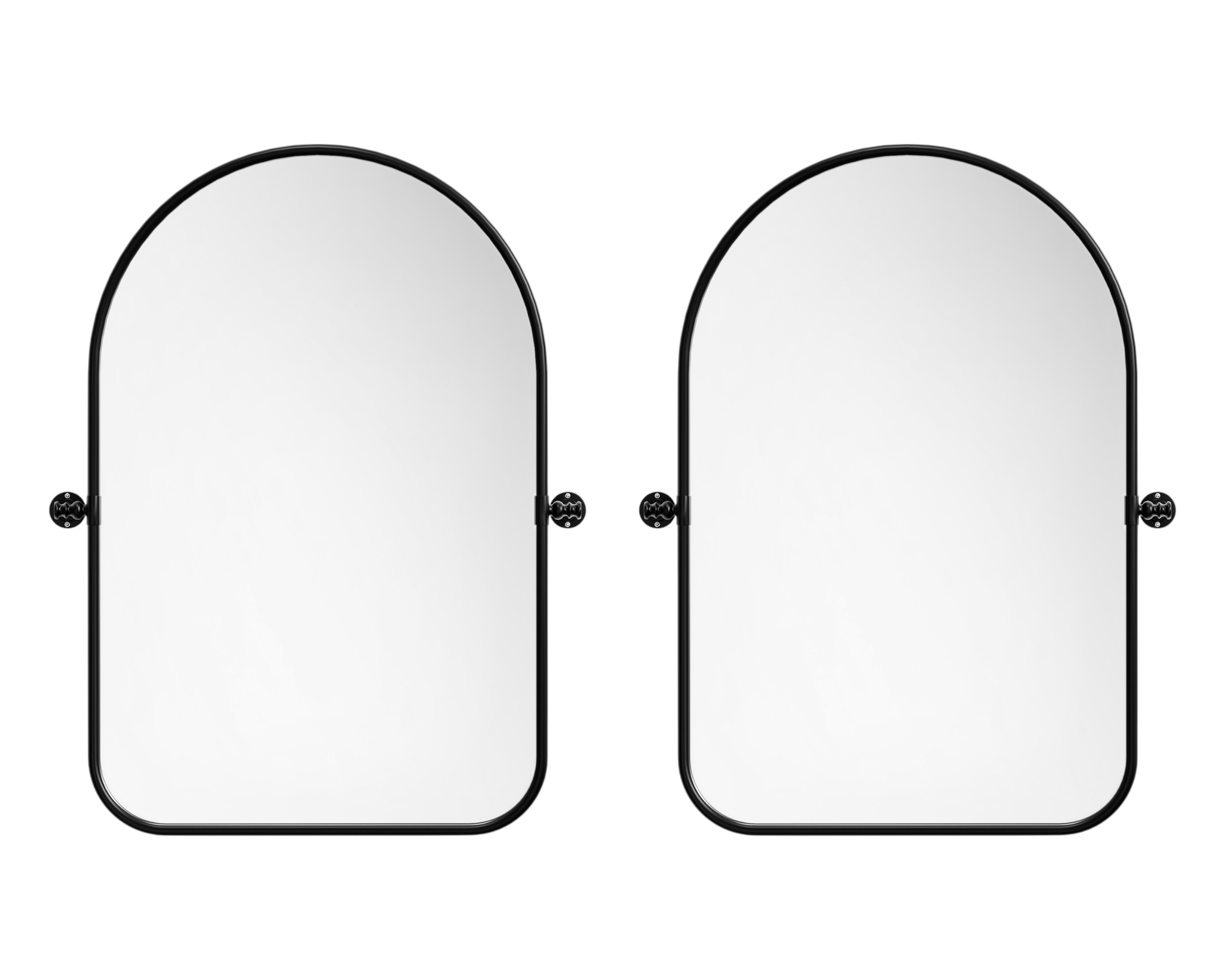 Add beauty to your bathroom or home with this set of two black arch iron framed bathroom vanity mirrors. Framed with iron, this mirror will bring practical application and fashionable design to your space, adding some contemporary flair to your decor. Features quality craftsmanship in every facet that ensures durability and long-lasting wear. Ideal to mount above your bathroom sink or vanity in your bathroom, this versatile piece can also be used in other rooms to add practical style and design to your space. Produced with premium quality glass for a beautiful reflection, this mirror will provide an exceptional visual experience. 36-inch h x 24-inch w x 1.57-inch d.