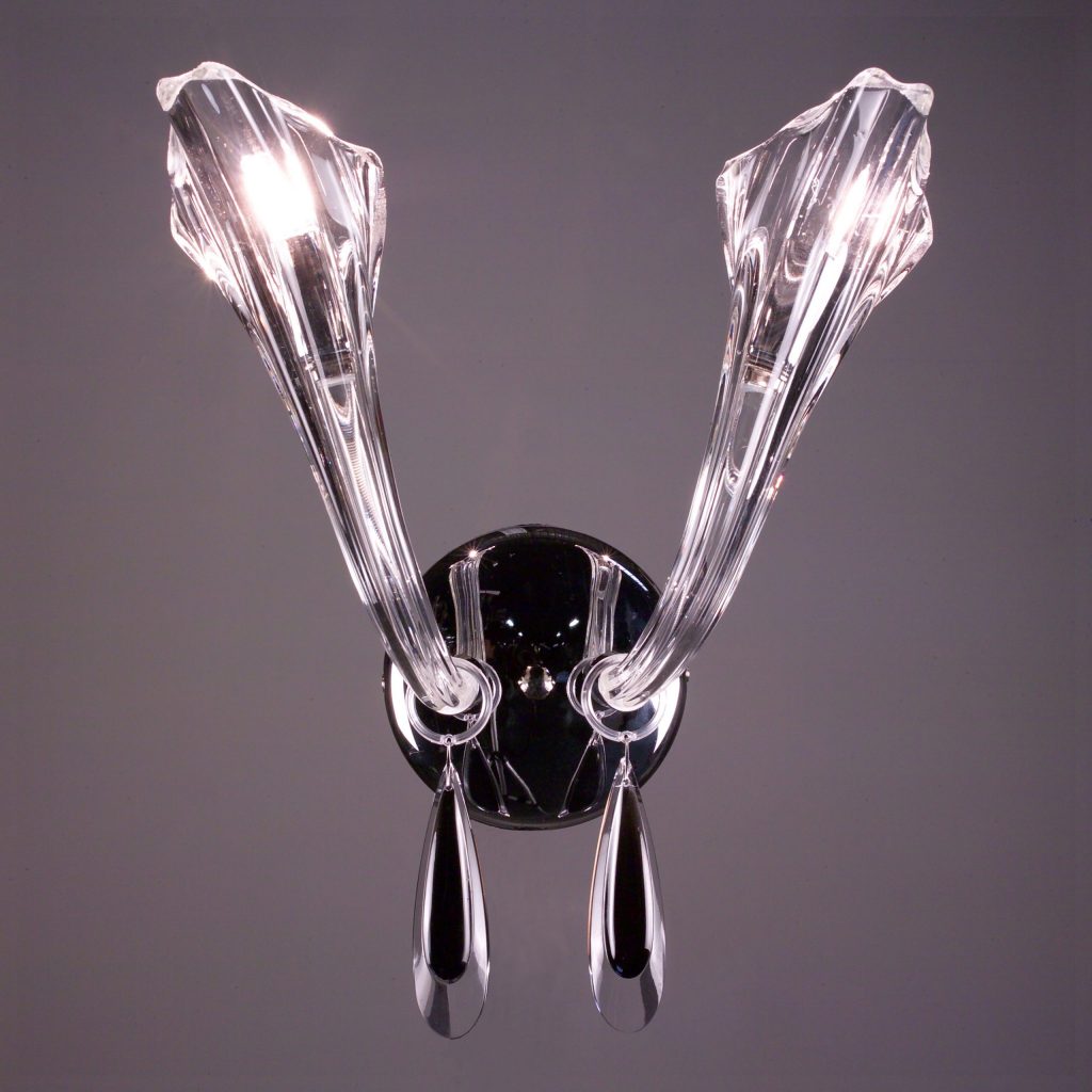 The beauty of a flower reaching upward to the heavens was the inspiration behind this series with its mouth blown gracefully upswept crystal arms. Let the simple elegance of these fixtures or the palette of colorful crystals available be your inspiration.