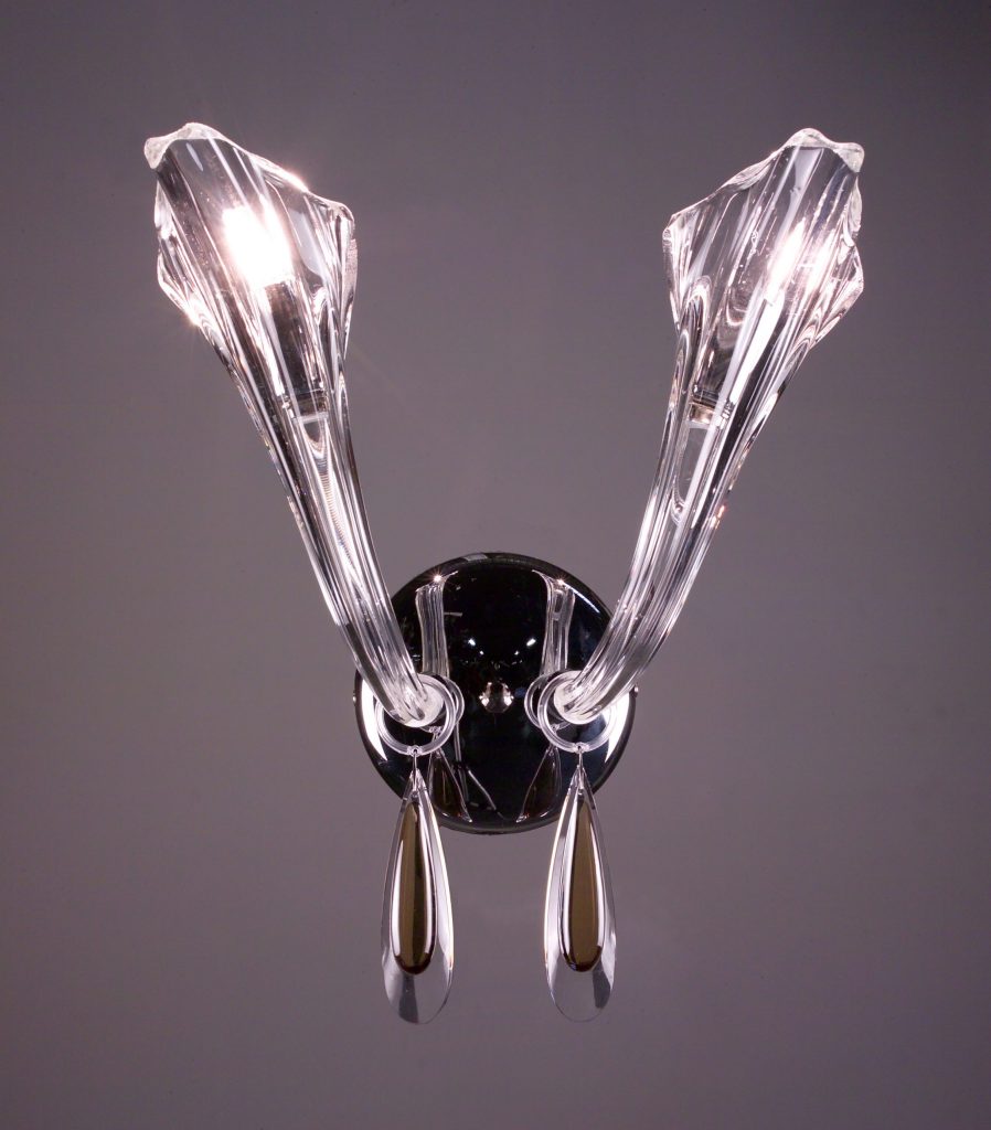 The beauty of a flower reaching upward to the heavens was the inspiration behind this series with its mouth blown gracefully upswept crystal arms. Let the simple elegance of these fixtures or the palette of colorful crystals available be your inspiration.