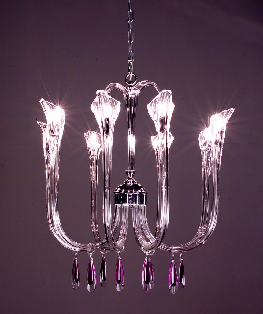 The beauty of a flower reaching upward to the heavens was the inspiration behind this series with its mouth blown gracefully upswept crystal arms. Let the simple elegance of these fixtures or the palette of colorful crystals available be your inspiration.