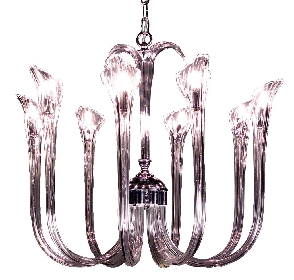The beauty of a flower reaching upward to the heavens was the inspiration behind this series with its mouth blown gracefully upswept crystal arms. Let the simple elegance of these fixtures or the palette of colorful crystals available be your inspiration.