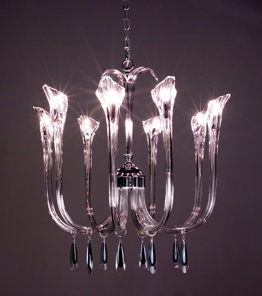The beauty of a flower reaching upward to the heavens was the inspiration behind this series with its mouth blown gracefully upswept crystal arms. Let the simple elegance of these fixtures or the palette of colorful crystals available be your inspiration.