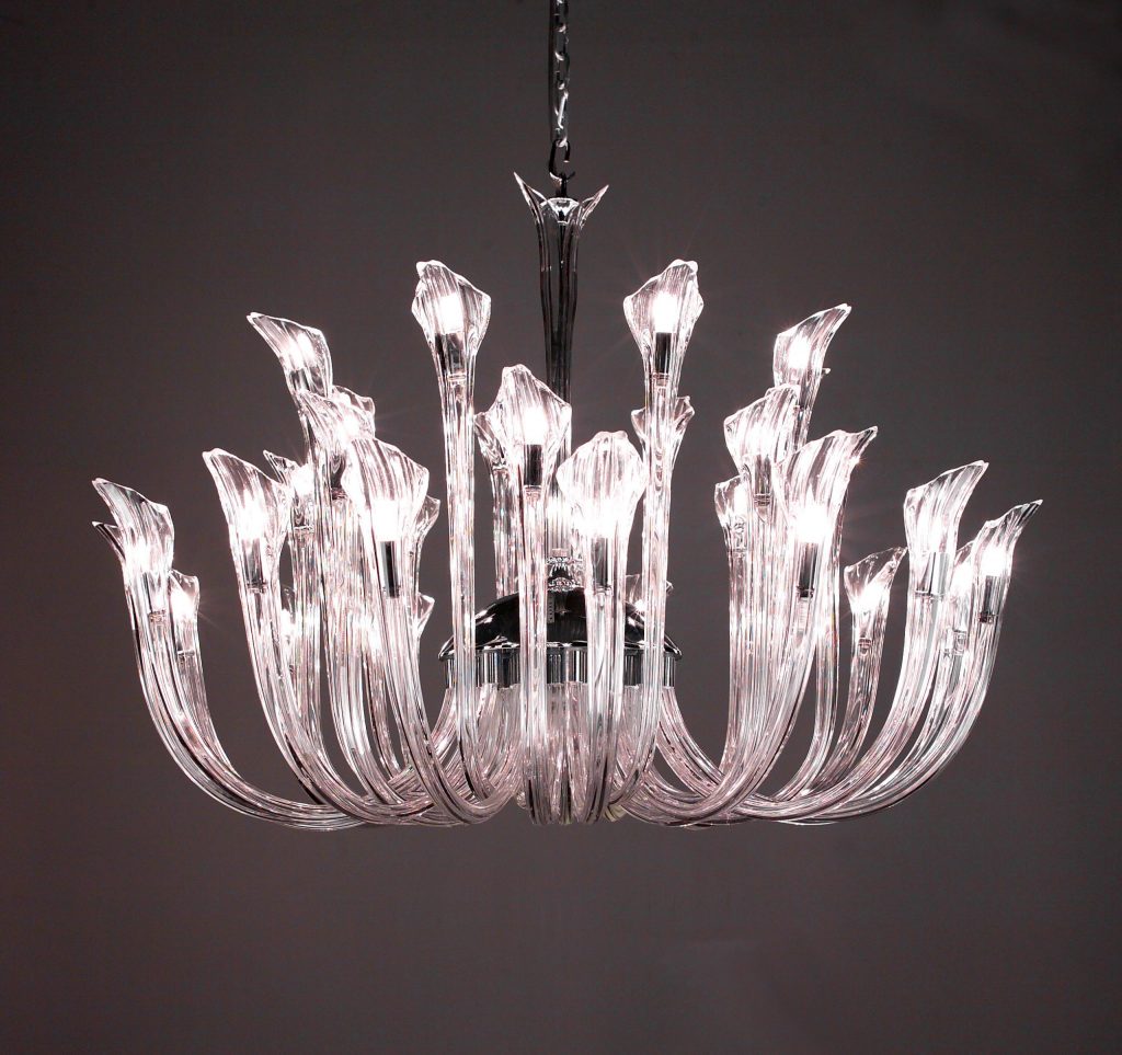 The beauty of a flower reaching upward to the heavens was the inspiration behind this series with its mouth blown gracefully upswept crystal arms. Let the simple elegance of these fixtures or the palette of colorful crystals available be your inspiration.