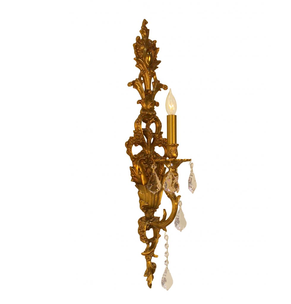 Solid brass castings from Spain and Italy, Spanish craftsman doing what they do best, top quality popular finishes- the perfect formula for a majestic line of old world family of chandeliers. Add the best, yet affordable, Crystalique Plus lead French Pendalogs and the result is two exquisite collections of chandeliers- the Majestic and Chateau. Height can be reduced by 8″ if top section of backplate is left off.