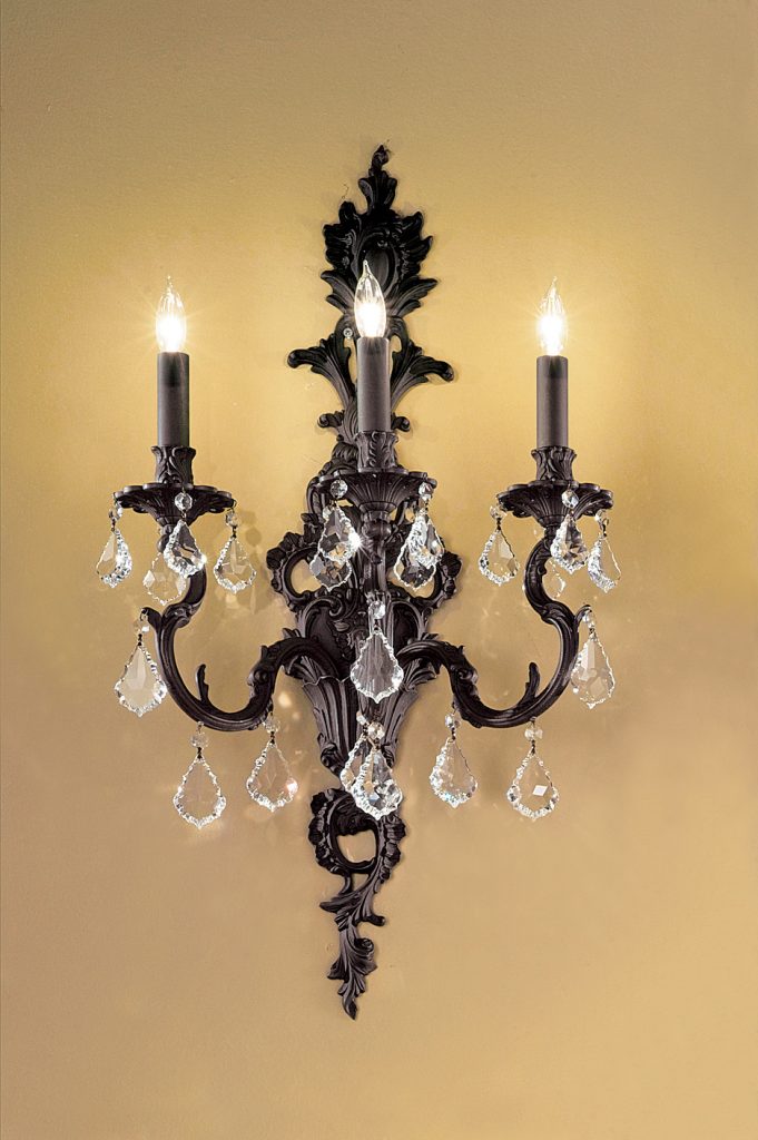 Solid brass castings from Spain and Italy, Spanish craftsman doing what they do best, top quality popular finishes- the perfect formula for a majestic line of old world family of chandeliers. Add the best, yet affordable, Crystalique Plus lead French Pendalogs and the result is two exquisite collections of chandeliers- the Majestic and Chateau. Height can be reduced by 8″ if top section of backplate is left off.