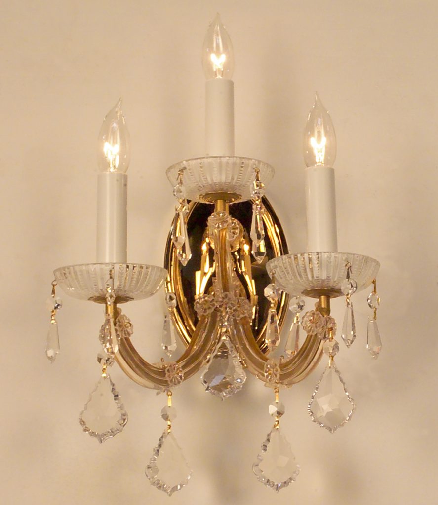 The perfect marriage between old and new … Traditional Maria Theresa chandeliers and wall sconces trimmed with today’s highest quality Swarovski Elements, Spectra or more economical hand cut and polished Crystalique crystal produces a real look of elegance that will last for years to come. All Olde World Gold items illustrated can be ordered in Chrome (CH) finish.