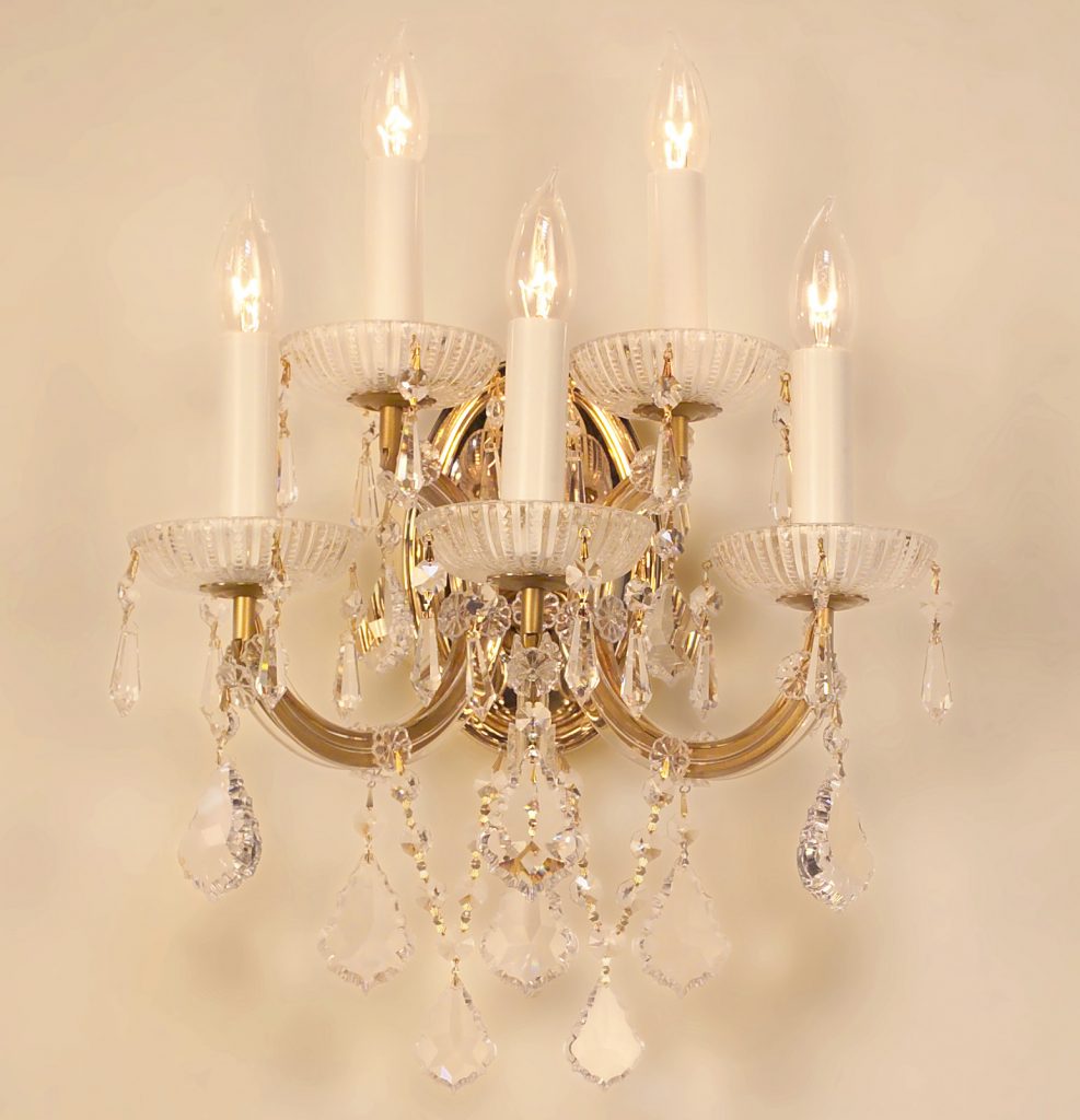 The perfect marriage between old and new … Traditional Maria Theresa chandeliers and wall sconces trimmed with today’s highest quality Swarovski Elements, Spectra or more economical hand cut and polished Crystalique crystal produces a real look of elegance that will last for years to come. All Olde World Gold items illustrated can be ordered in Chrome (CH) finish.