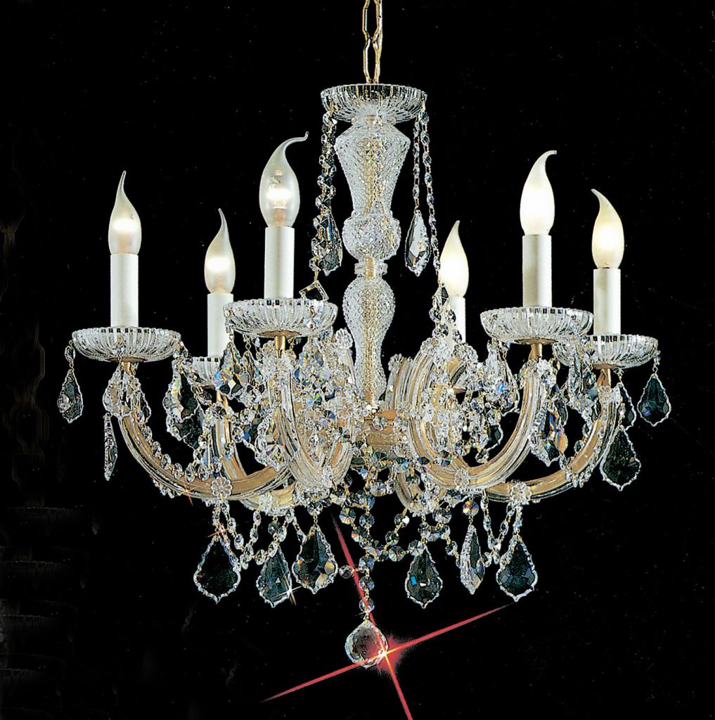 The perfect marriage between old and new … Traditional Maria Theresa chandeliers and wall sconces trimmed with today’s highest quality Swarovski Elements, Spectra or more economical hand cut and polished Crystalique crystal produces a real look of elegance that will last for years to come. All Olde World Gold items illustrated can be ordered in Chrome (CH) finish.