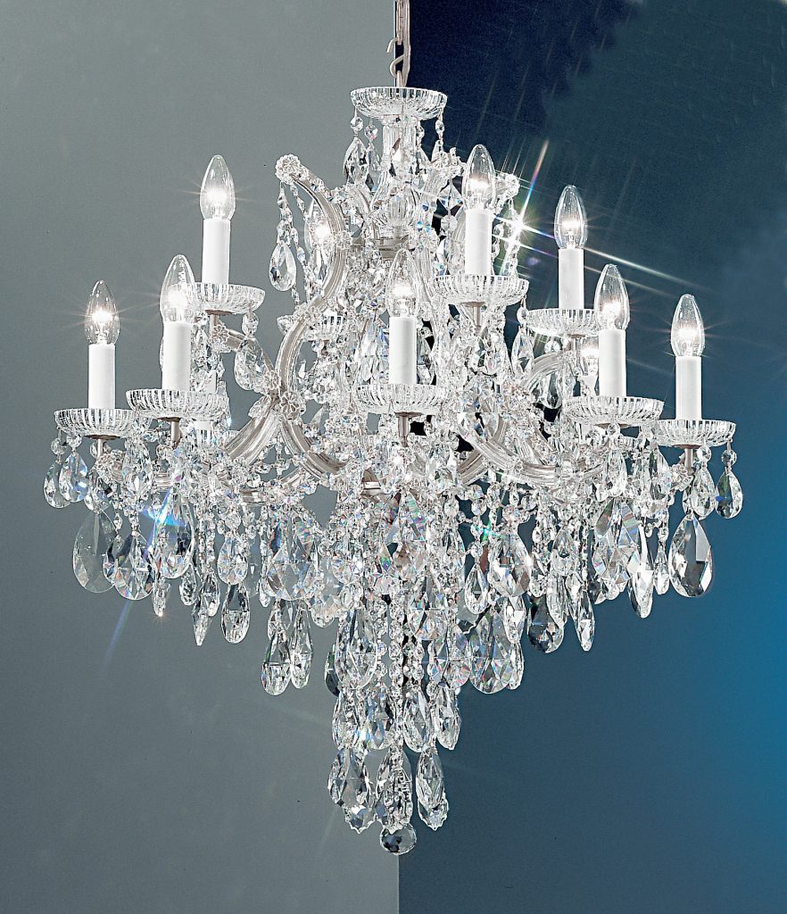 The perfect marriage between old and new … Traditional Maria Theresa chandeliers and wall sconces trimmed with today’s highest quality Swarovski Elements, Spectra or more economical hand cut and polished Crystalique crystal produces a real look of elegance that will last for years to come. All Olde World Gold items illustrated can be ordered in Chrome (CH) finish.