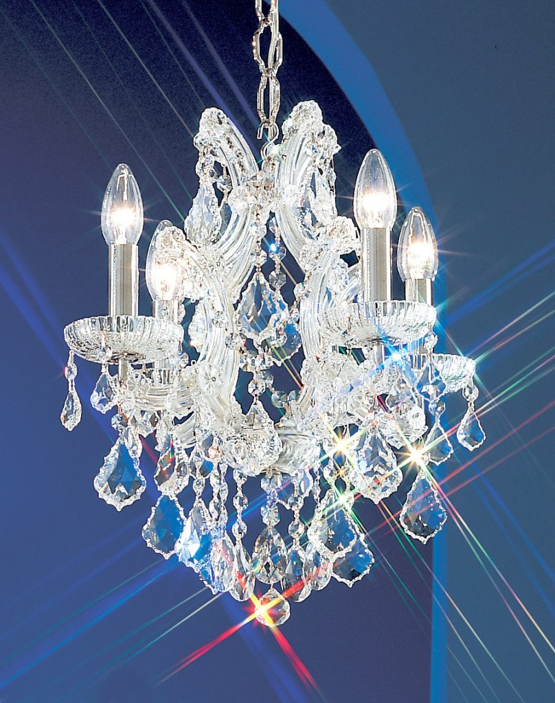 The perfect marriage between old and new … Traditional Maria Theresa chandeliers and wall sconces trimmed with today’s highest quality Swarovski Elements, Spectra or more economical hand cut and polished Crystalique crystal produces a real look of elegance that will last for years to come. All Olde World Gold items illustrated can be ordered in Chrome (CH) finish.