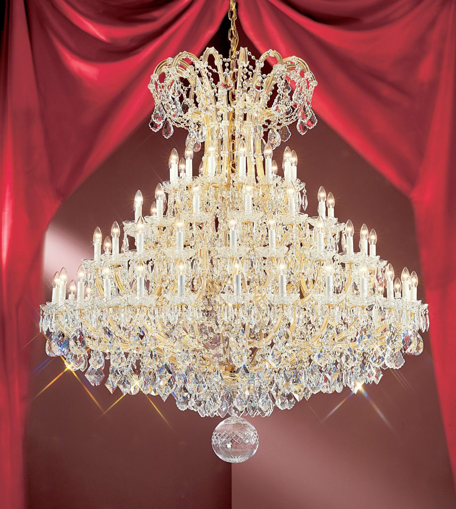 The perfect marriage between old and new … Traditional Maria Theresa chandeliers and wall sconces trimmed with today’s highest quality Swarovski Elements, Spectra or more economical hand cut and polished Crystalique crystal produces a real look of elegance that will last for years to come. All Olde World Gold items illustrated can be ordered in Chrome (CH) finish.