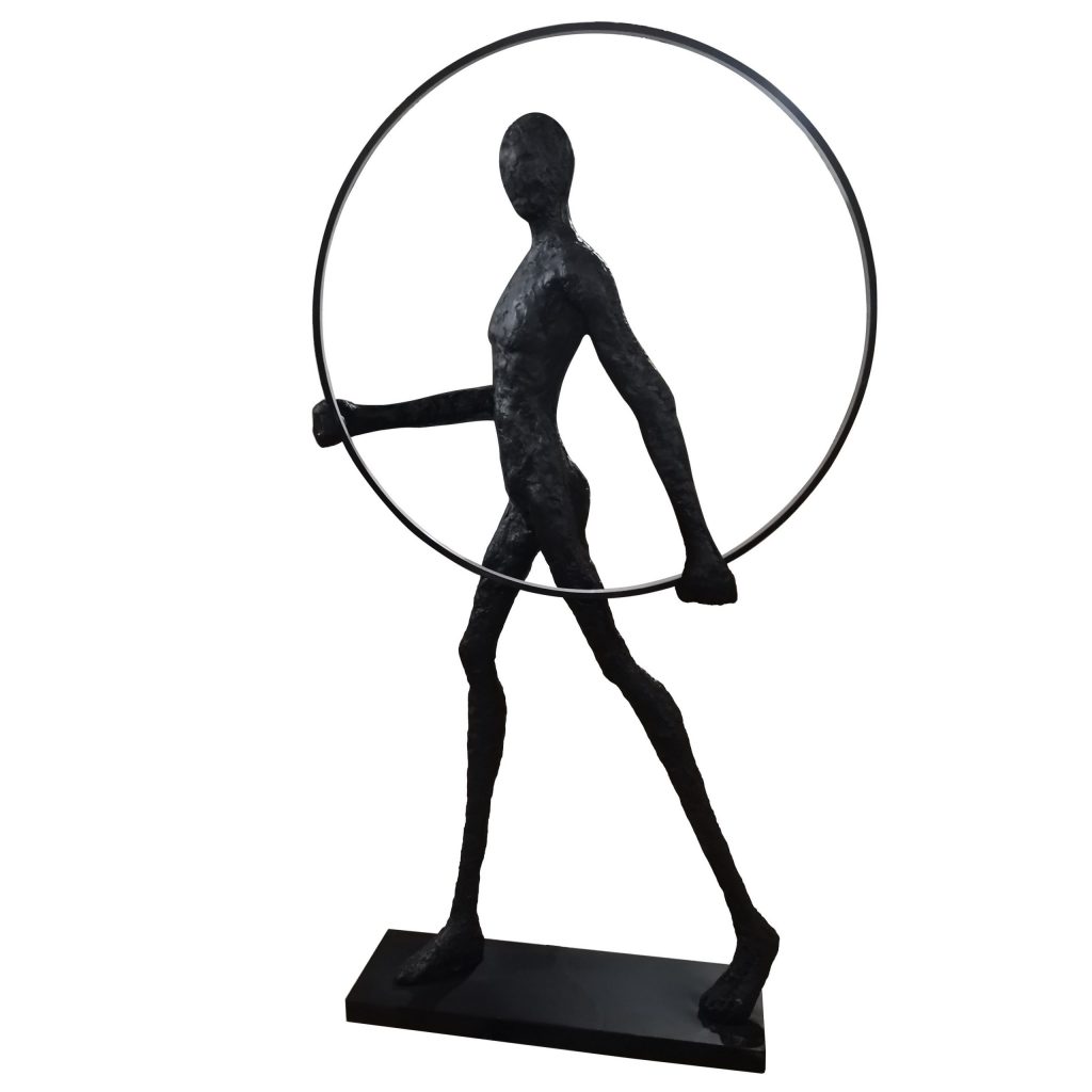 Modern Black Statue with Hoop