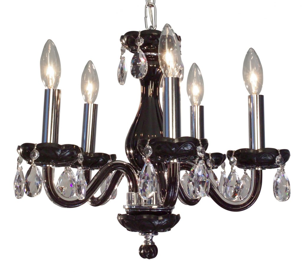 The Monaco series are petite chandeliers having a simple elegance that will blend with most decors, but with eye-catching color options that POP. The lead crystal arms are coated on the inside with color to add a certain flare. Choose no crystal trim if the look desired is clean simplicity, or add colored crystal to slant the look toward traditional opulence. Frames are European-Made.