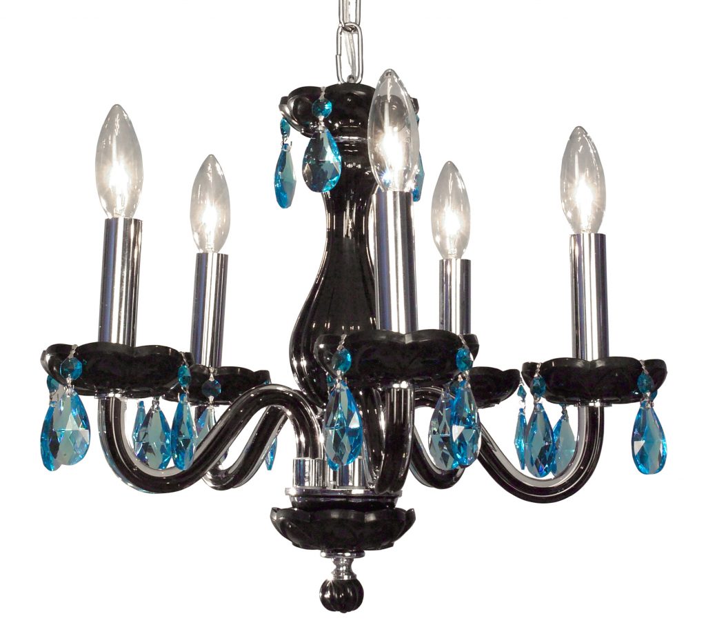 The Monaco series are petite chandeliers having a simple elegance that will blend with most decors, but with eye-catching color options that POP. The lead crystal arms are coated on the inside with color to add a certain flare. Choose no crystal trim if the look desired is clean simplicity, or add colored crystal to slant the look toward traditional opulence. Frames are European-Made.