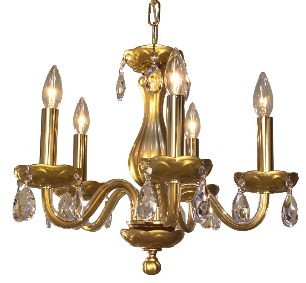 The Monaco series are petite chandeliers having a simple elegance that will blend with most decors, but with eye-catching color options that POP. The lead crystal arms are coated on the inside with color to add a certain flare. Choose no crystal trim if the look desired is clean simplicity, or add colored crystal to slant the look toward traditional opulence. Frames are European-Made.