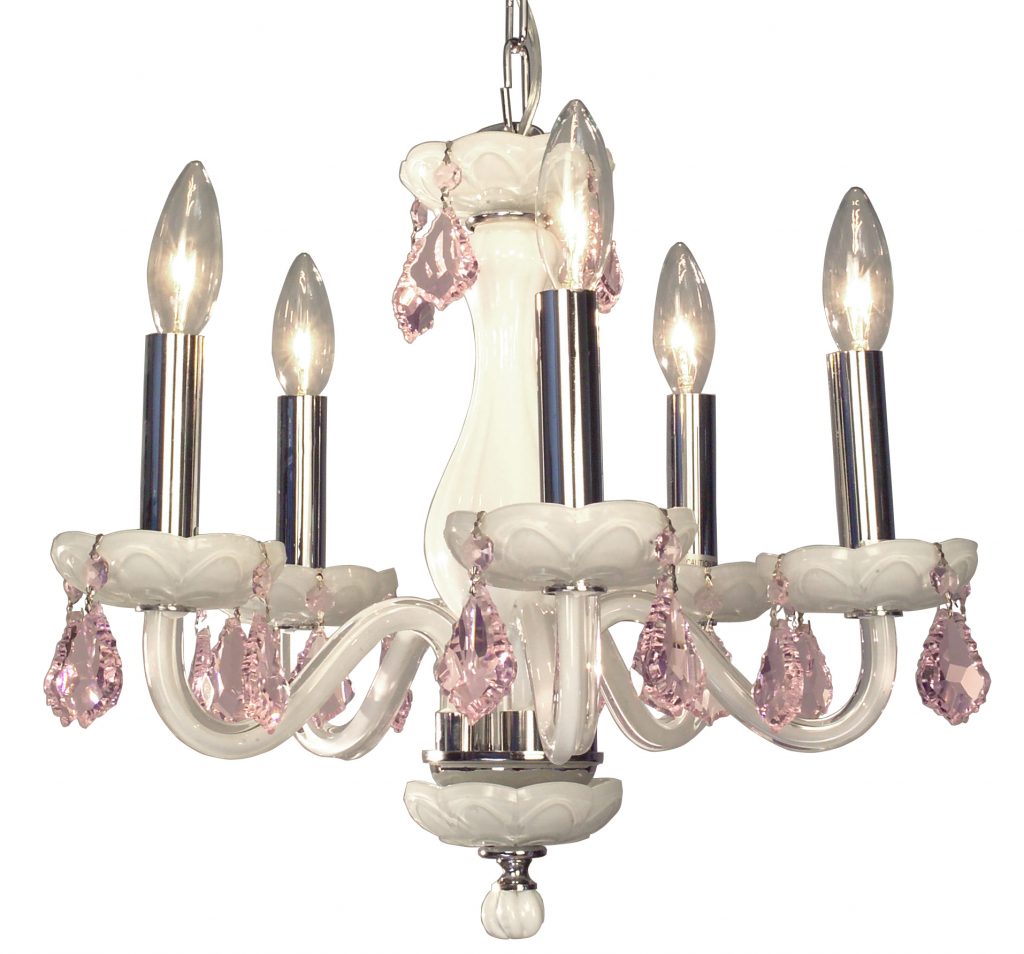 Monaco-82045 WHT PNK - Chandelier-5 Lights