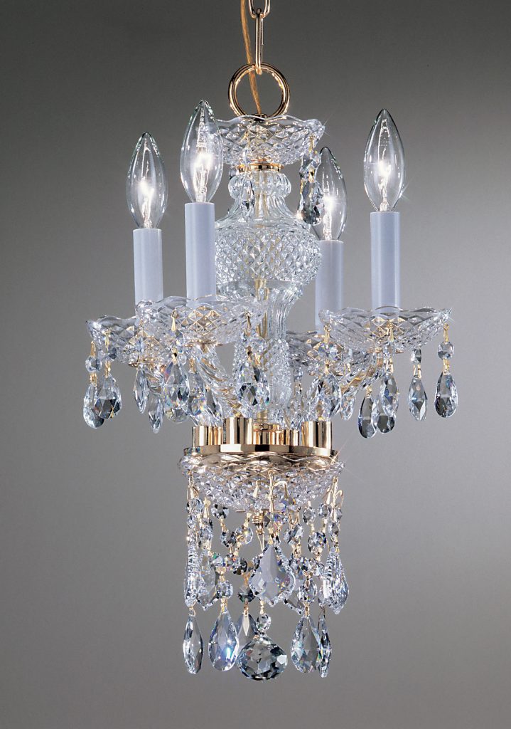 All-glass chandeliers generously adorned with a combination of French Pendalogs, almond cut prisms and elongated chains make this series very desirable yet most affordable.