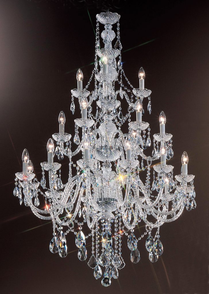 All-glass chandeliers generously adorned with a combination of French Pendalogs, almond cut prisms and elongated chains make this series very desirable yet most affordable.