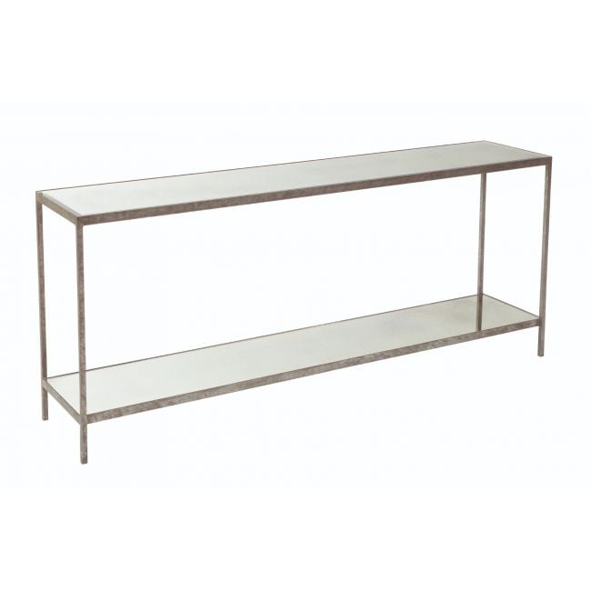Material: iron base with shell or reverse beveled antiqued mirror top