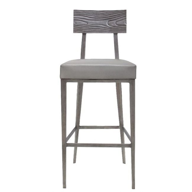 Oly Studio’s signature approach to cast aluminum is fully evident in the Tuck barstool. The wood grain texture—hand-carved across the entire surface—creates visual depth and prevents the material from reading as cold or industrial. The texture catches light subtly, introducing warmth and complexity that invites closer examination. The compact footprint (measuring 20 inches wide and 18 inches deep) ensures efficient spatial use around islands or bars, allowing multiple stools to align without creating cramped or visually cluttered arrangements. The integrated design approach—minimal or no visible fasteners—maintains the piece’s clean aesthetic profile.