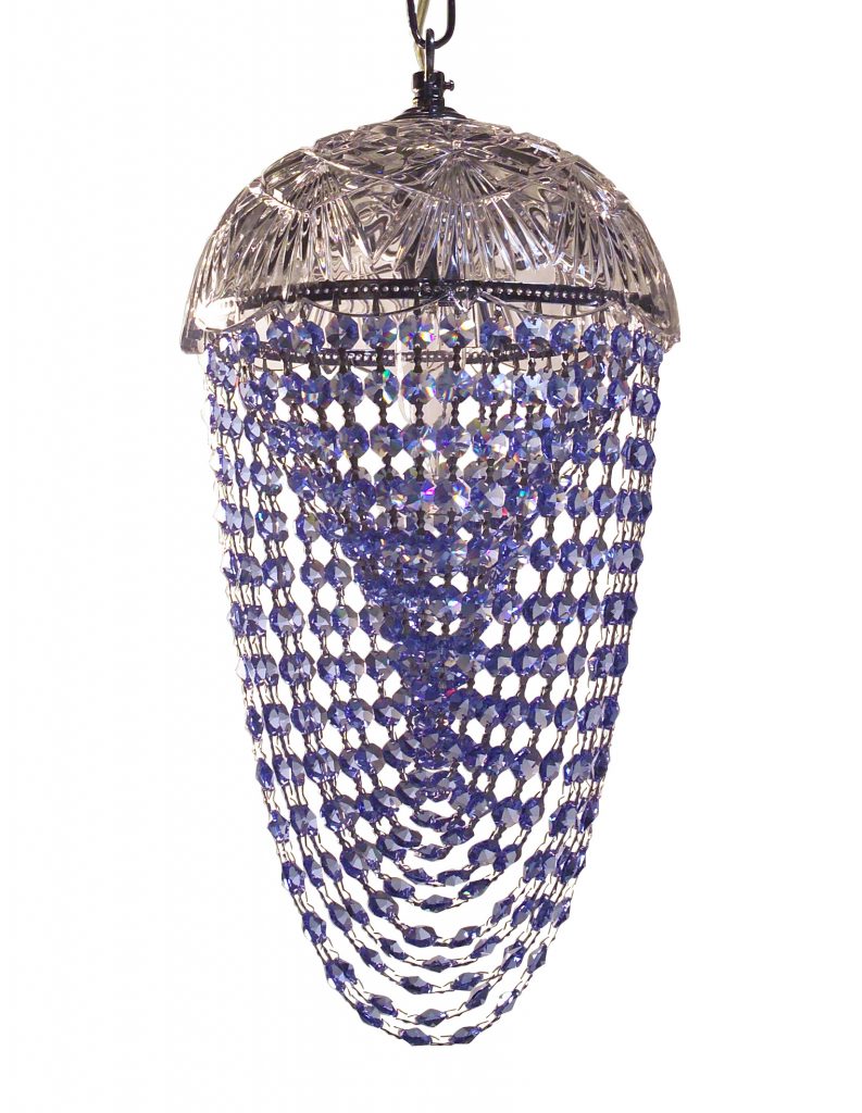 The sweeping crystal draping of the Prague Color series is available with premium quality 30% colored lead crystal trim in either solid colors or with a random spattering of color.