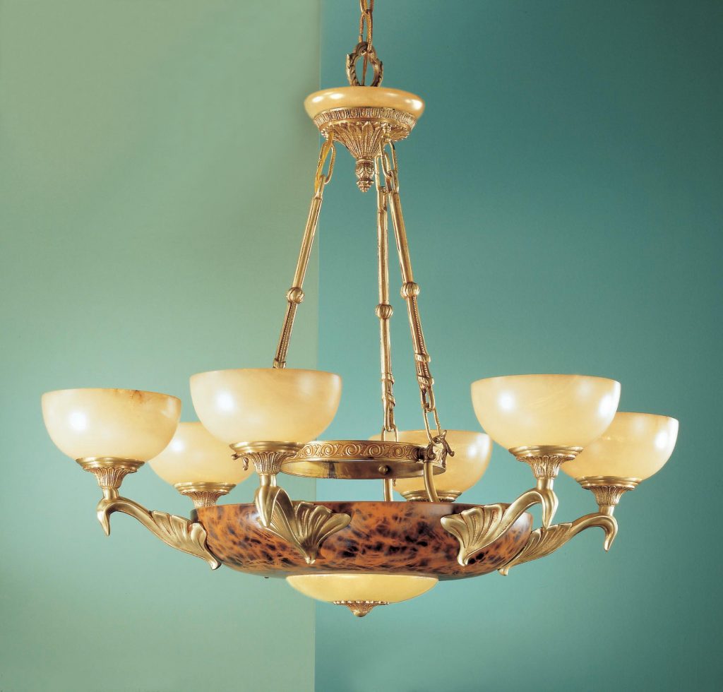 Lights: 8 x 40W candelabra (G16 1/2 round)