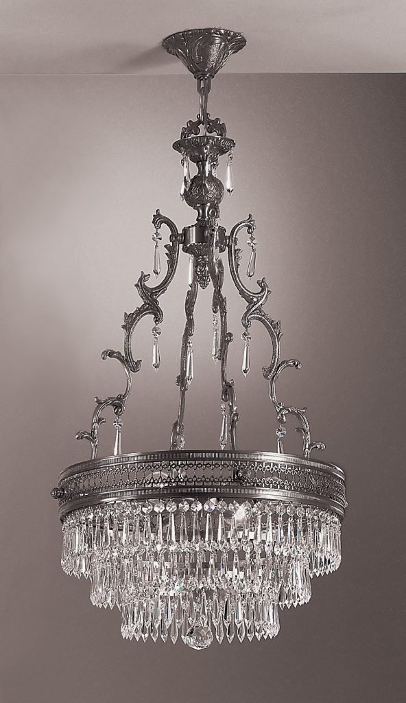 These magnificent empire shaped Spanish solid brass chandeliers and matching accessories, lend a contemporary touch to elegant crystal lighting. Offered in two very desirable finishes of French Gold or elegant Matte Bronze, they are uniquely trimmed in a variety of crystal qualities.