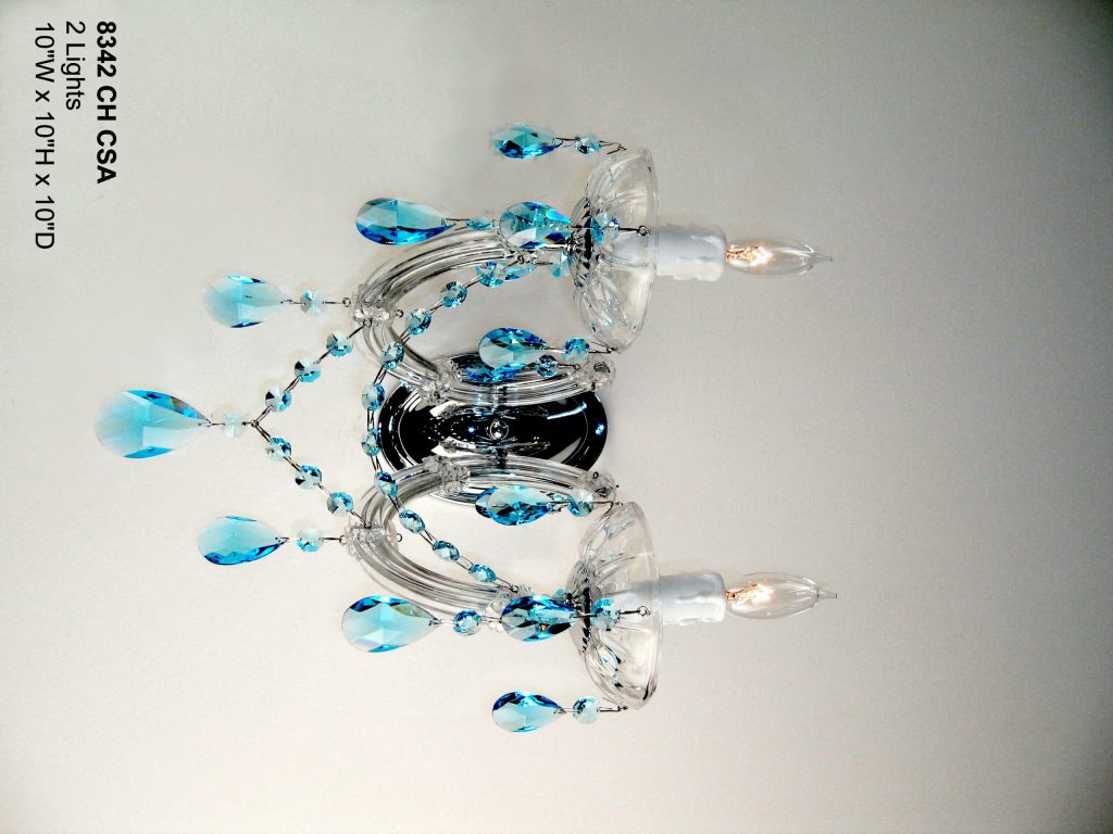 This version remains true to the original traditional Maria Theresa design and crystal trim. It is a better complement to the more conventional decorating schemes. It is trimmed with Crystalique- Plus™ as the standard trim. In the Maria Theresa tradition, the metal frames are encased with blow glass panels and glass dishes.