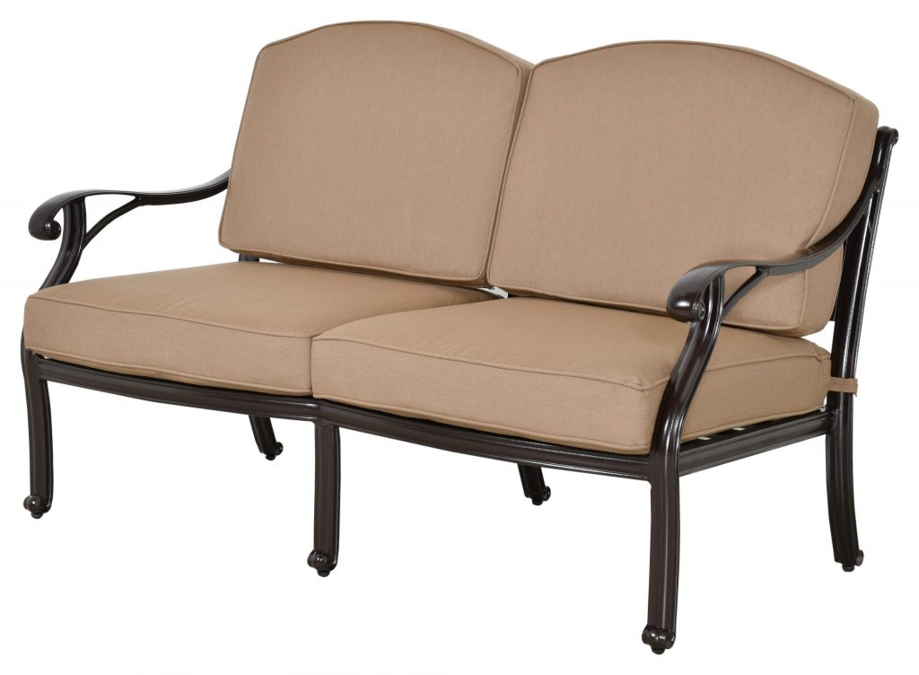Two-person loveseat bringing aluminum durability to intimate entertaining.
