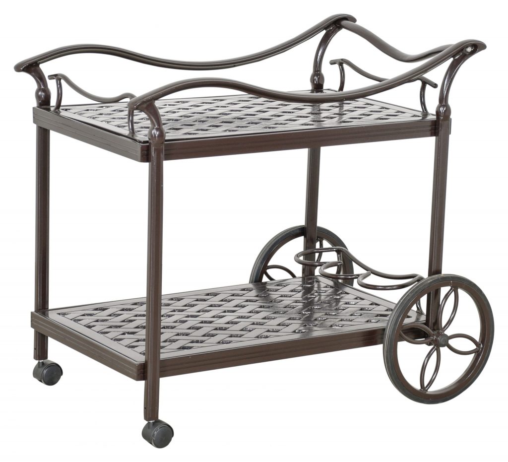 Elegant aluminum serving cart bringing graceful function to outdoor entertaining.