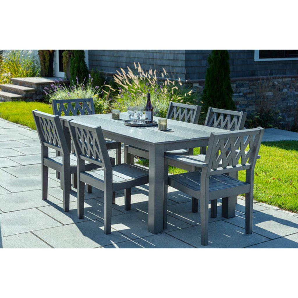 The Diamond pattern brings a contemporary edge to the Greenwich Collection’s classic proportions. Each diamond cutout is precisely machined for consistency and structural integrity, creating a back that’s as strong as it is striking. This arm chair works beautifully at the head of a Greenwich Dining Table, establishing visual hierarchy while keeping the design language cohesive across your outdoor dining space.
