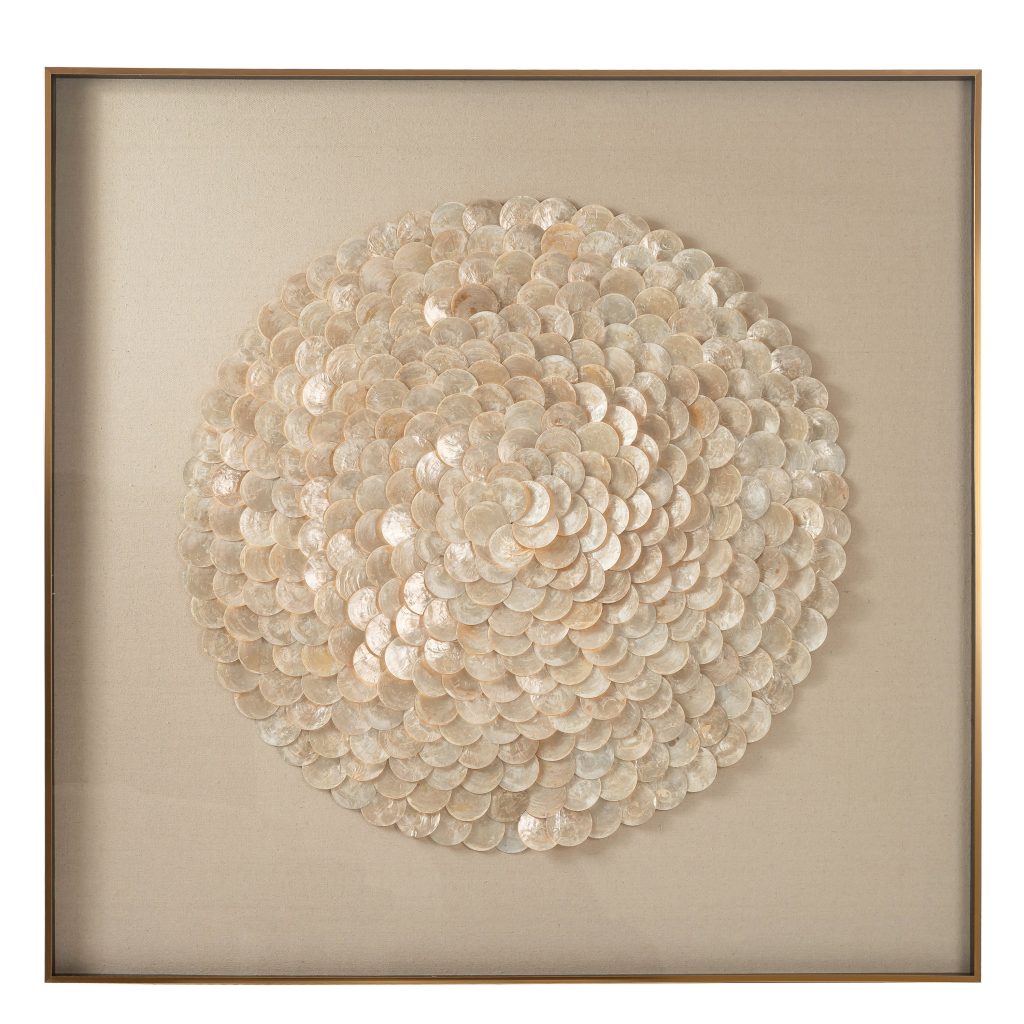 Shell Bloom Framed Wall Art Bring refined coastal elegance to your space with the Shell Bloom Framed Wall Art Framed Wall Art . This sculptural piece features natural shell discs arranged in a layered, floral-inspired circular design, creating rich texture and luminous depth. Each shell catches the light softly, adding subtle movement and organic beauty to the composition. Set within a sleek metal frame, the artwork balances natural materials with a clean, contemporary edge. The neutral palette and dimensional form make it an ideal focal point for living rooms, bedrooms, dining areas, or entryways, seamlessly complementing modern, coastal, and transitional interiors. Item Number: YIA004 Item Number: Shell Bloom Framed Wall Art Material: Shell , Metal Frame Dimensions: W39.4″ x D2.75″ x 39.4″