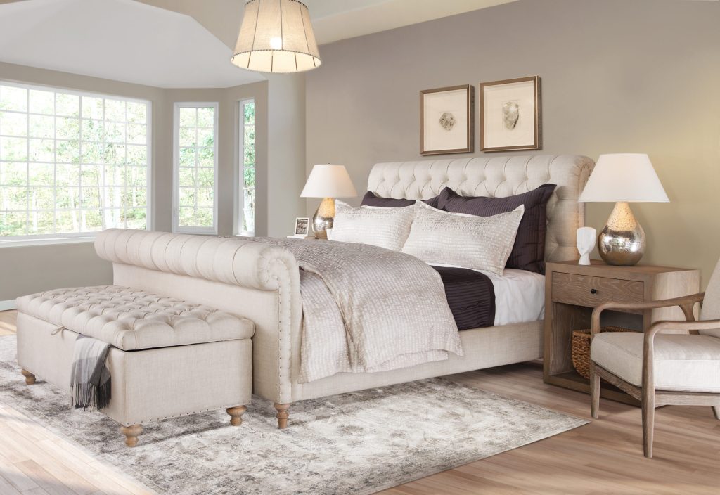 Spectra Home constructs the Finn King with a handcrafted upholstered frame that emphasizes architectural detail without sacrificing structural integrity. The substantial proportions—85 inches wide, 90 inches deep (including the headboard extension), and 70 inches tall—create visual drama while providing the muscular engineering that ensures decades of service. The upholstered surfaces invite touch, their soft luxury grounding the bedroom in comfort and elegance. Handcrafted in North Carolina, the Finn bed reflects the brand’s philosophy: furniture as both art and utility.