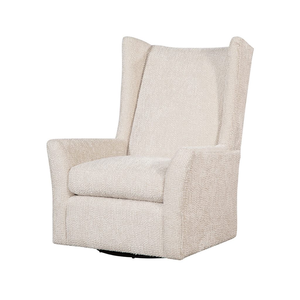 At 36 inches wide, 37 inches deep, and commanding 48-inch height, the Kent creates visual presence suited to living rooms, studies, and bedrooms where a sculptural accent piece is desired. The full 360-degree swivel base rotates smoothly, accommodating dynamic seating arrangements and conversation flow. The generous proportions and architectural detailing make the Kent a statement piece—furniture as both practical seat and design destination.